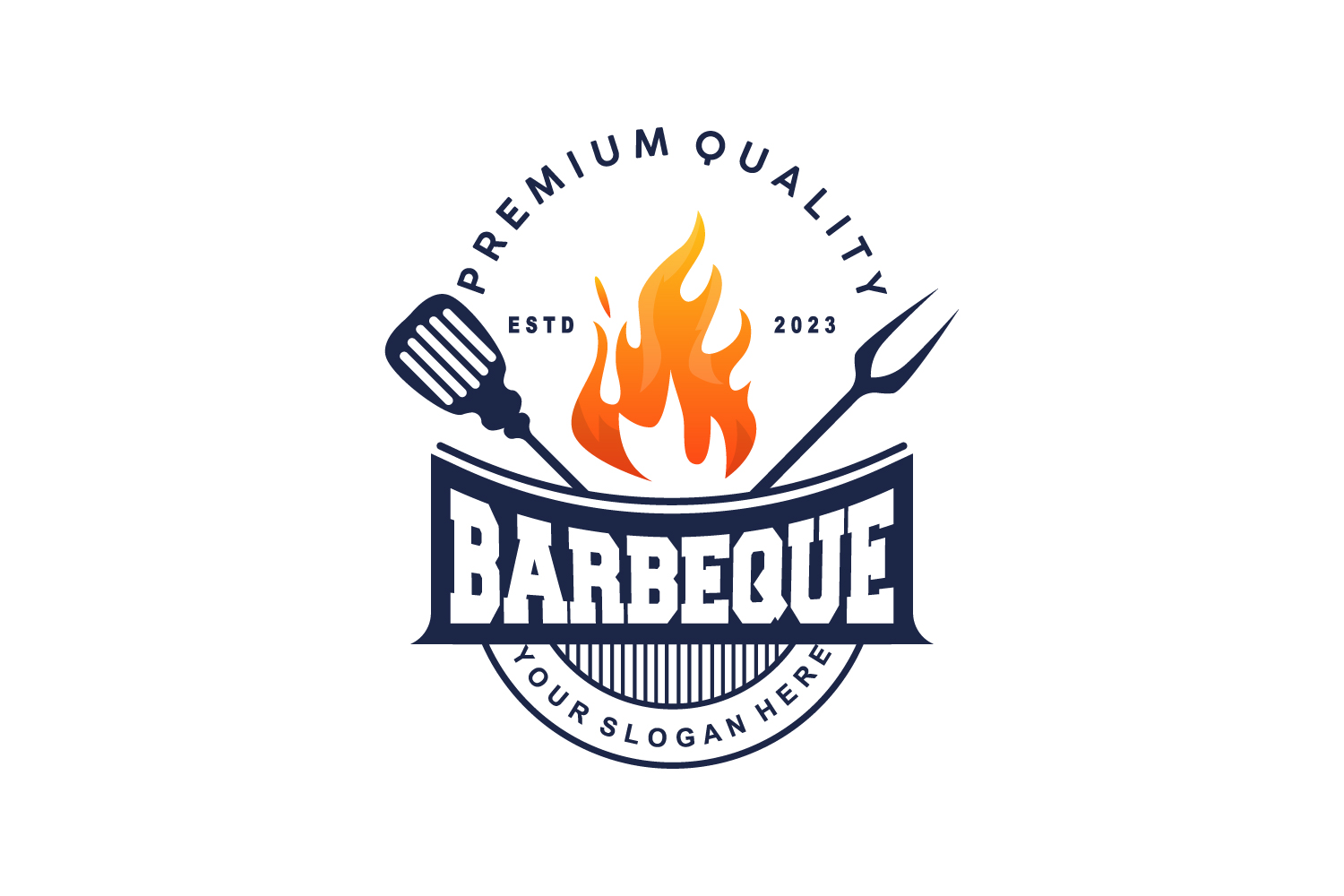 Barbeque Logo Hot Grill Design Vintage V4 Logo Template
