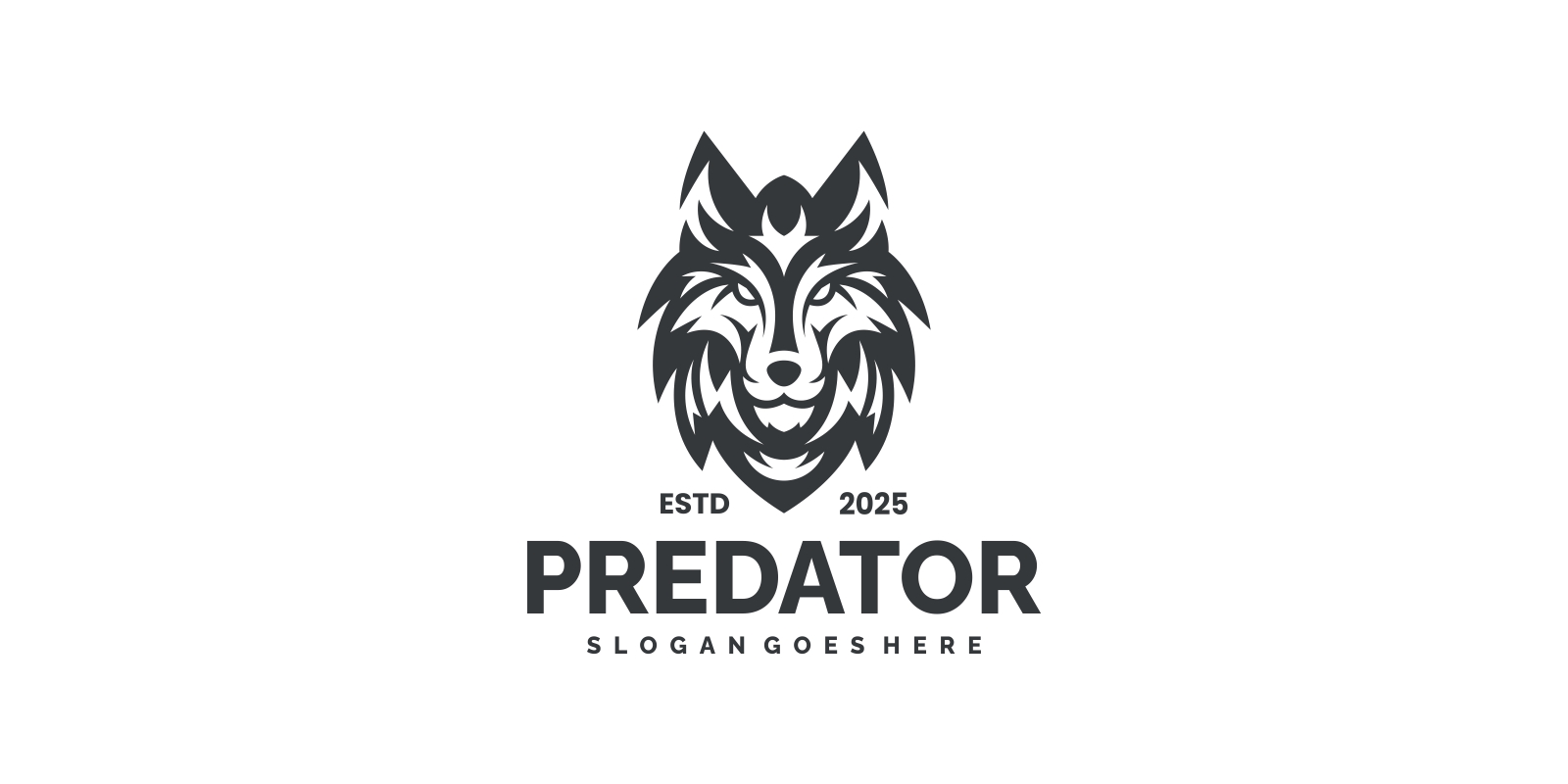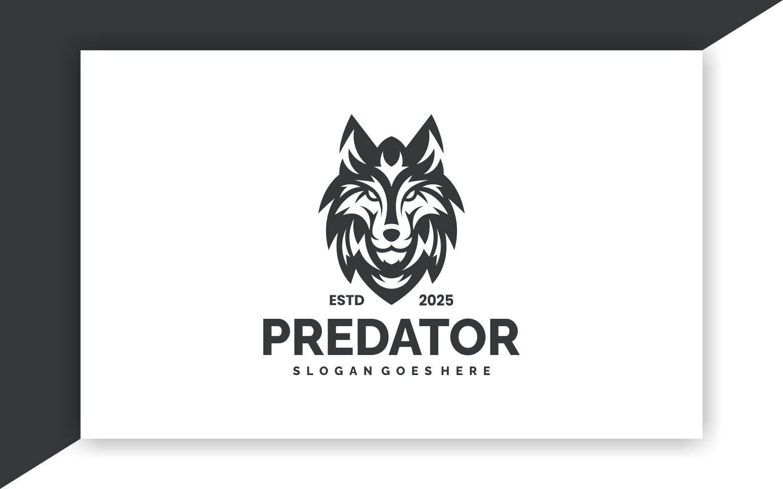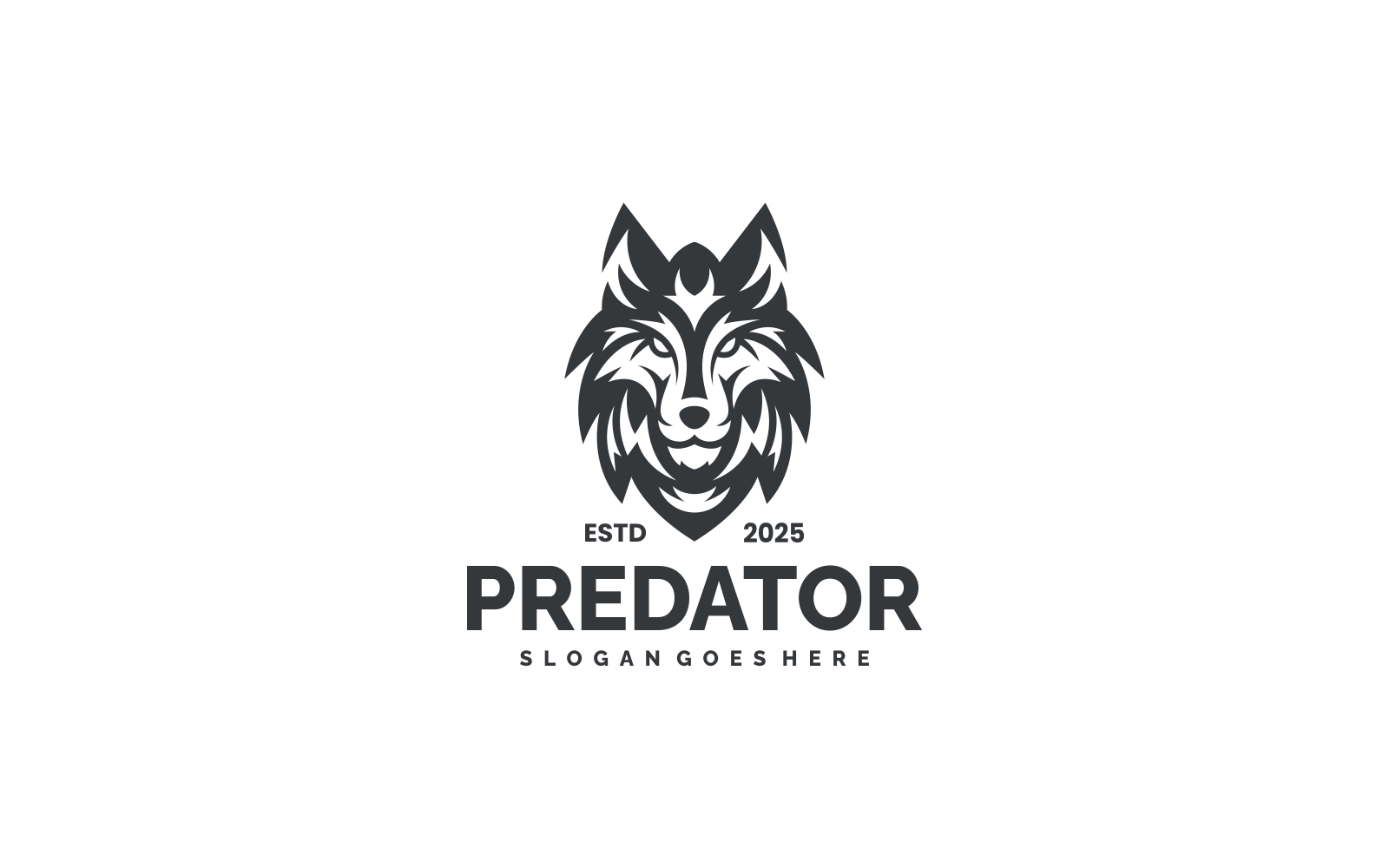 Predator Wolf Head Logo – Bold Monochrome Mascot Emblem for Outdoor or Sport Branding