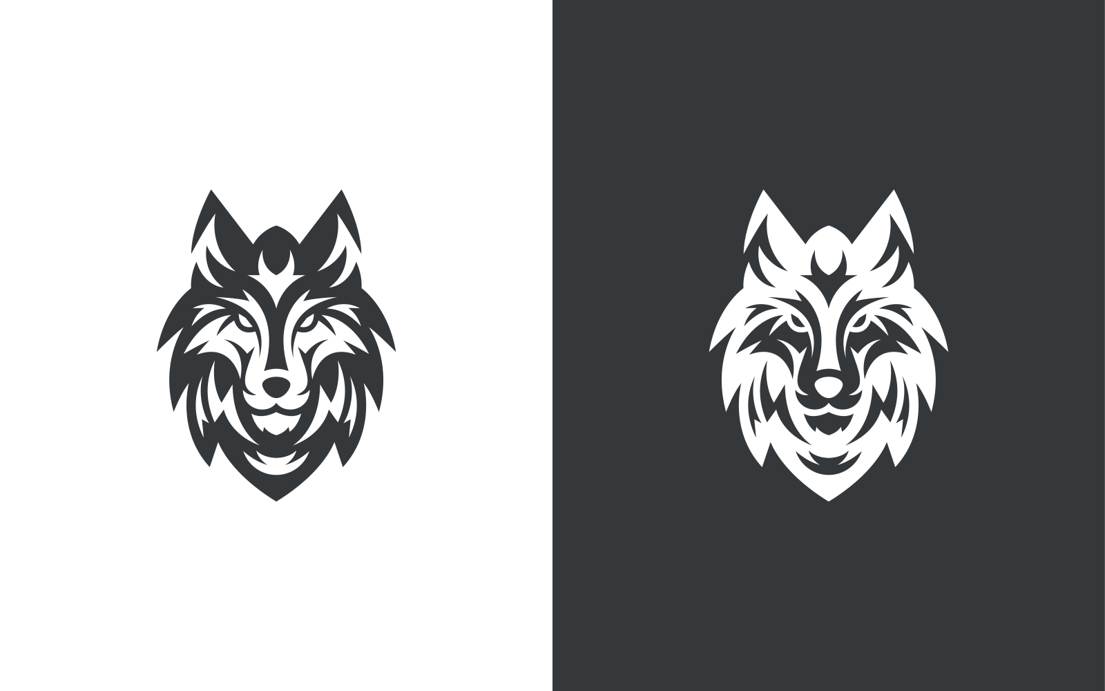Bold Monochrome Wolf Mascot Logo Design Logo Template