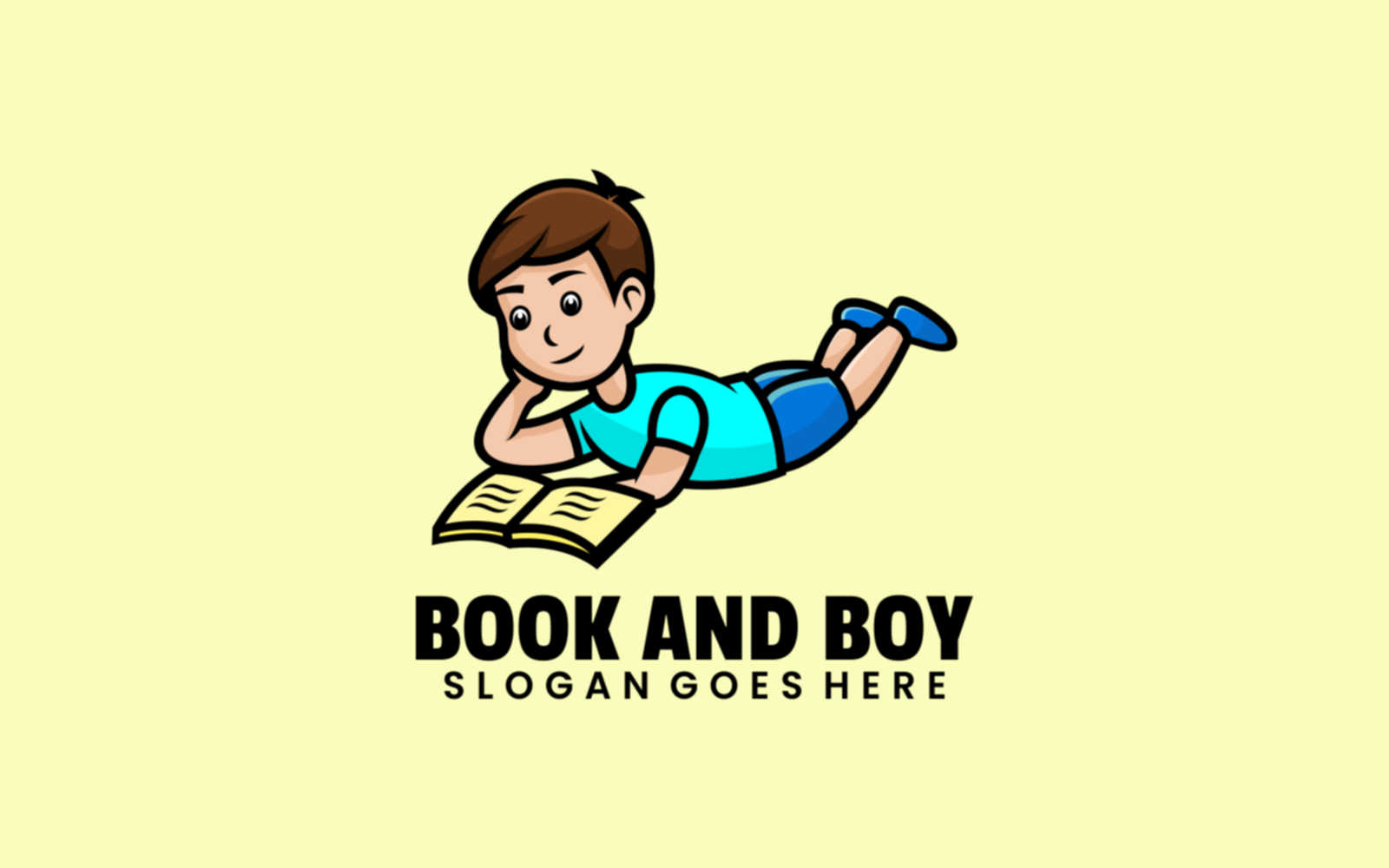 Boy Reads Book Cartoon Logo Logo Template