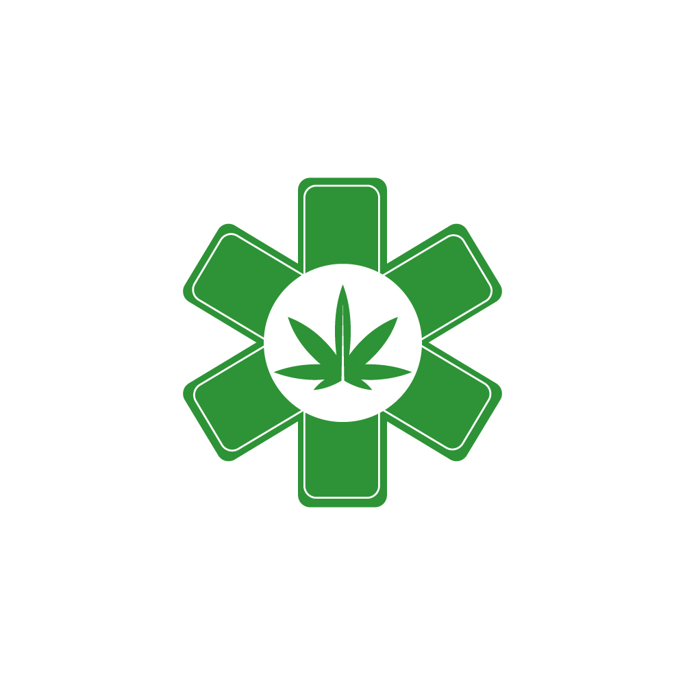 This logo merges a cannabis leaf with a pharmacy symbol, representing medical marijuana dispensaries or healthcare services related to cannabis.