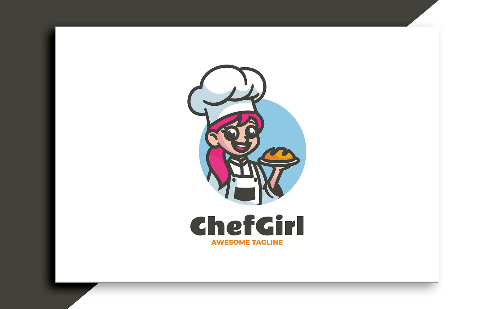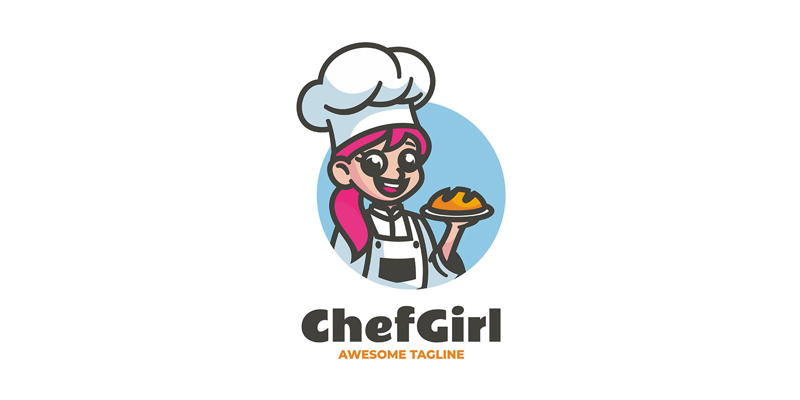 Chef Girl Mascot Cartoon Logo 2 Logo Template
