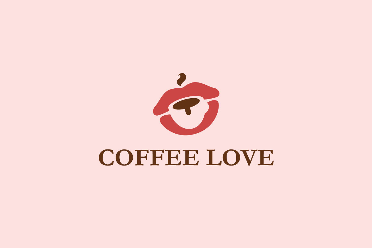 CoffeeLove – Romantic Coffee Logo Design with Kiss Symbol Logo Template
