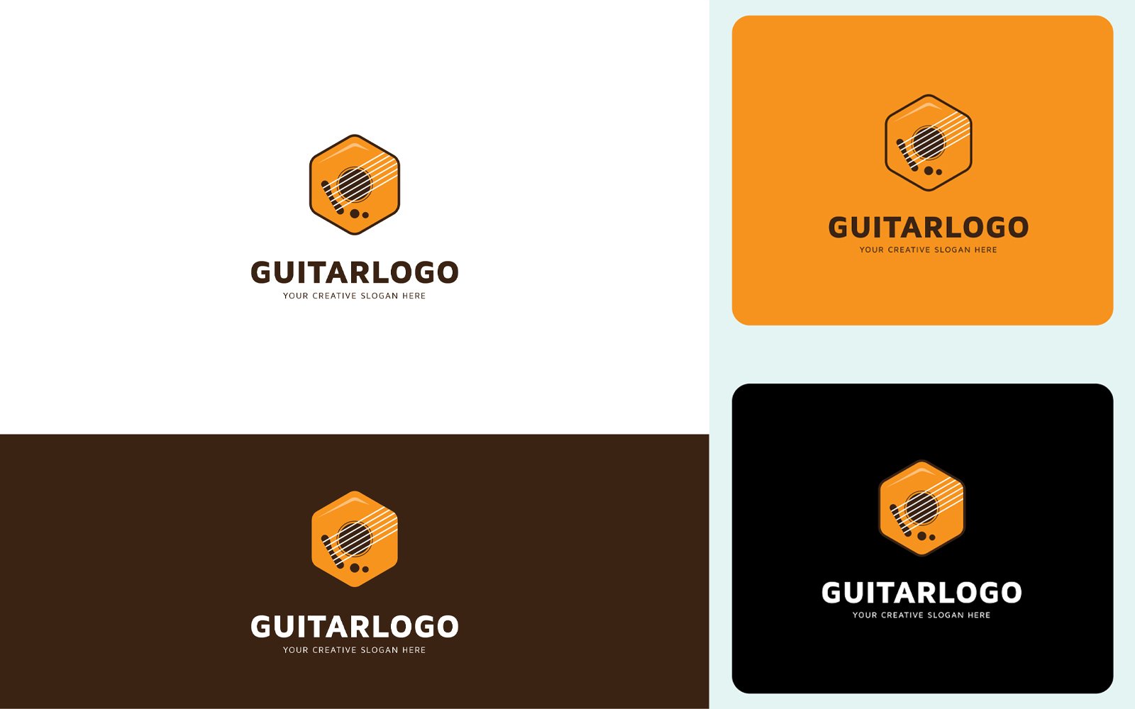Logo Specifications: 1. A modern professional Creative Hexagonal Guitar Music Logo Design Template