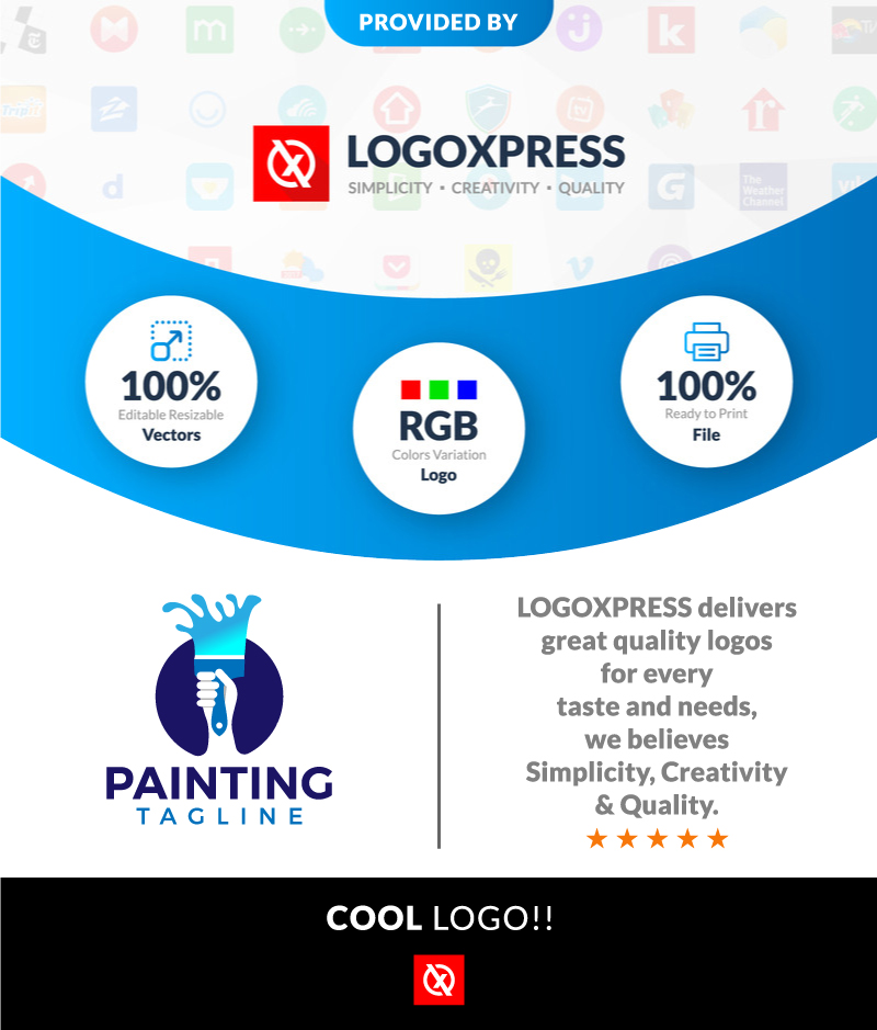 Creative Paint Brush Logo Design, House Painting Logo, Painter Handyman Logo, Color splash paint logo design for Painting Services Vector Coating, Remodeling Home Renovation Real Estate, Construction. its a creative and cool icon. It is ready to print. Ready to use. They are fully editable and scalable. Improve your visibility. Get a professional and effective logo! When you purchase this logo please give me your 5 Star feedback!!