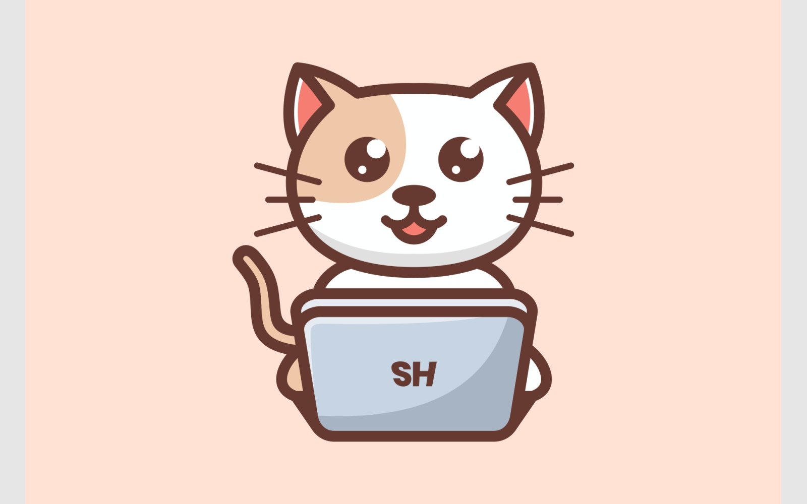 Cute Kitten Cat with Laptop Illustration Logo Template