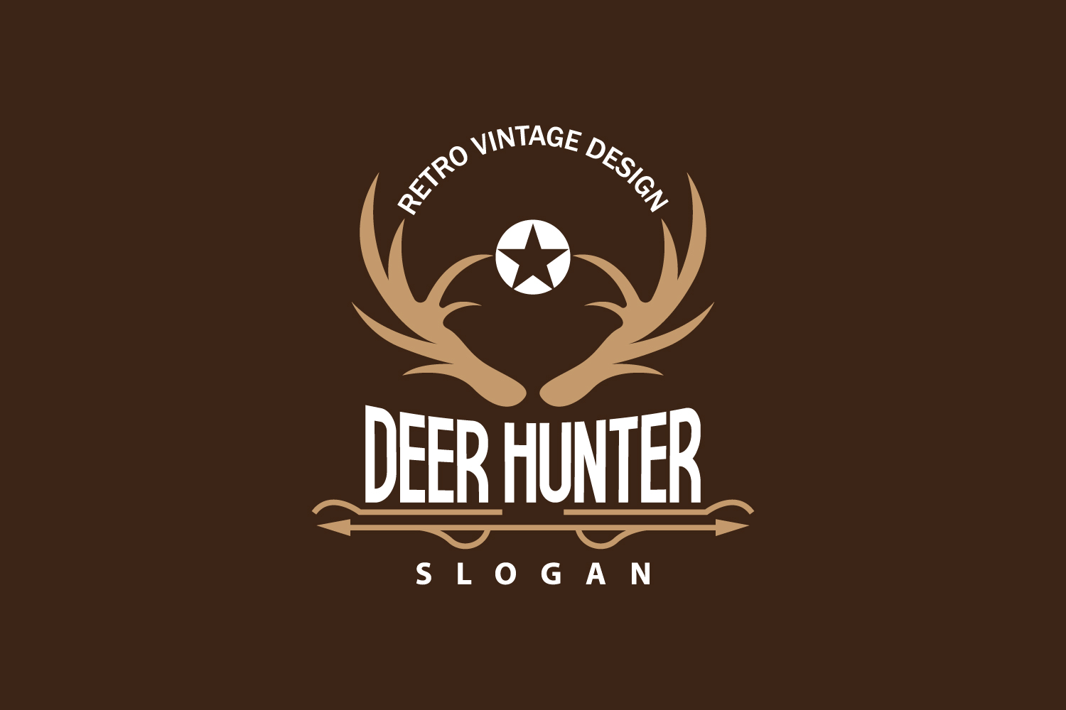 Deer Logo, Deer Hunter Vector, Forest Animal Design, Deer Antlers Retro Vintage Symbol Design Icon