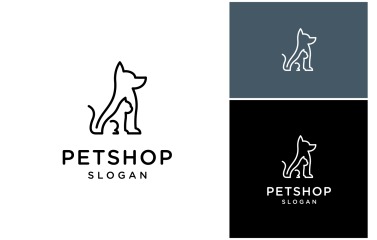 Dog Cat Pet Shop Line Art Logo