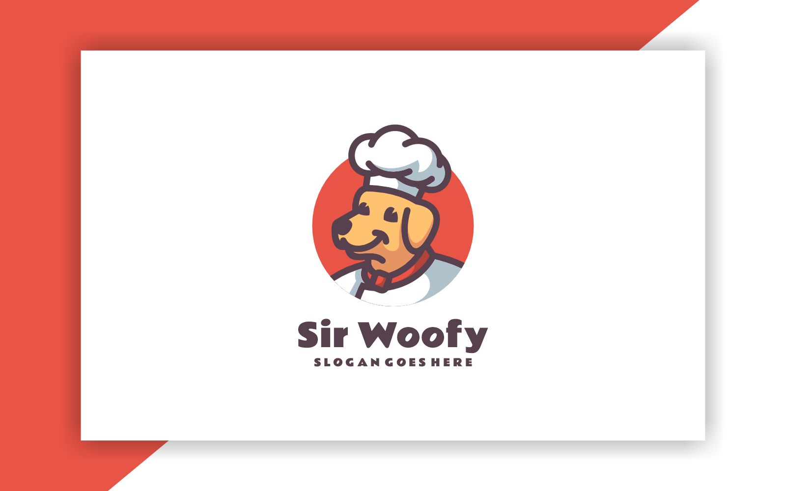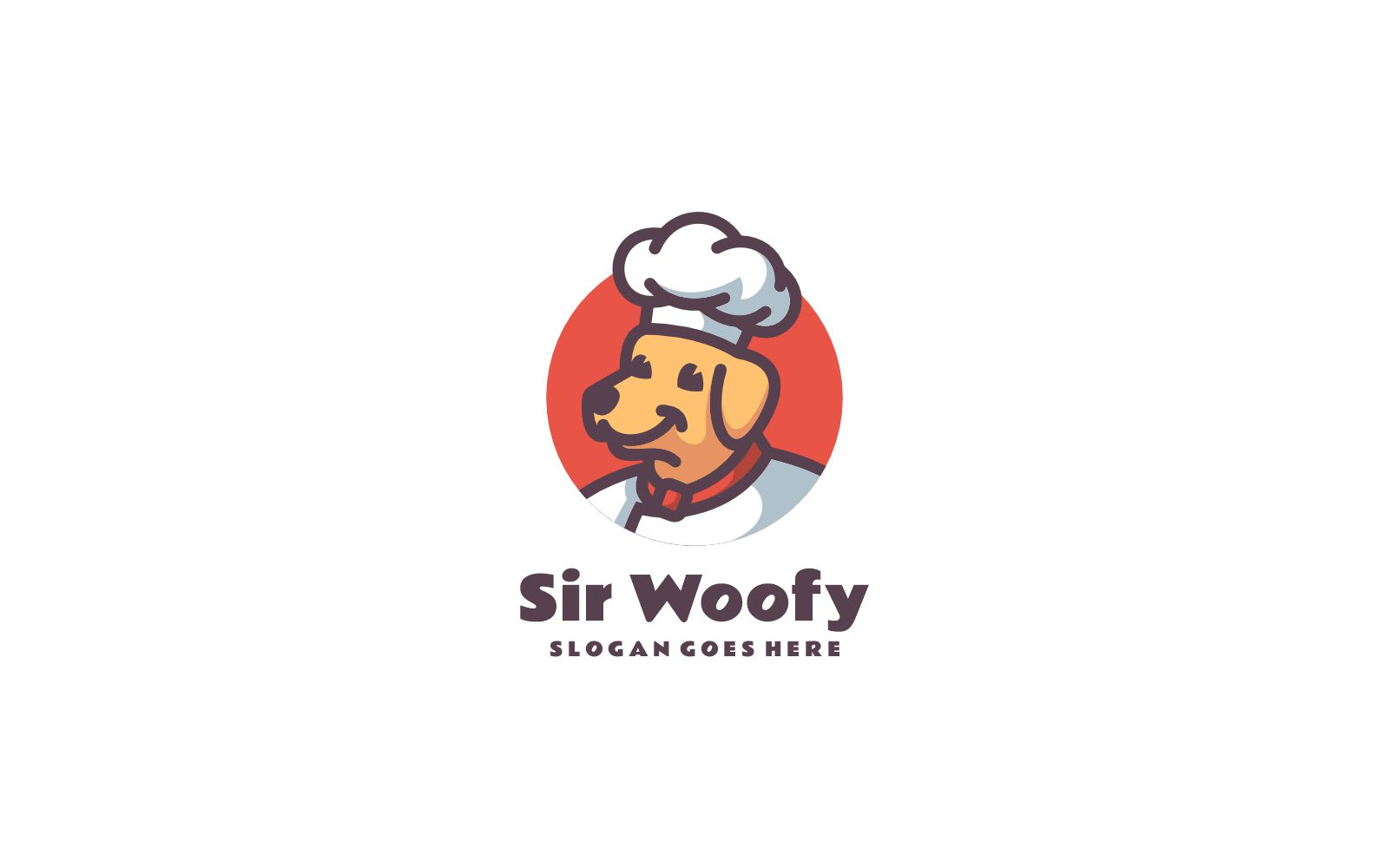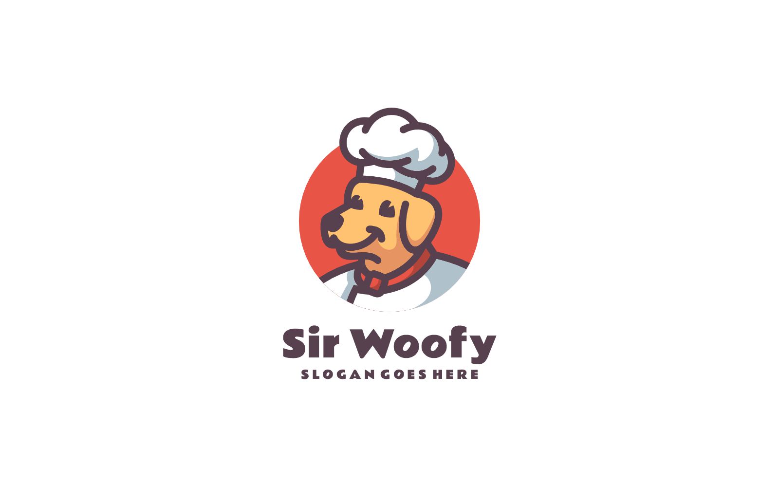The Sir Woofy logo features a cheerful dog mascot wearing a tall white chef’s hat, bringing together culinary charm and pet-friendly appeal. With a modern, cartoon-style illustration and a bold red circular background, this design creates a fun and welcoming vibe.