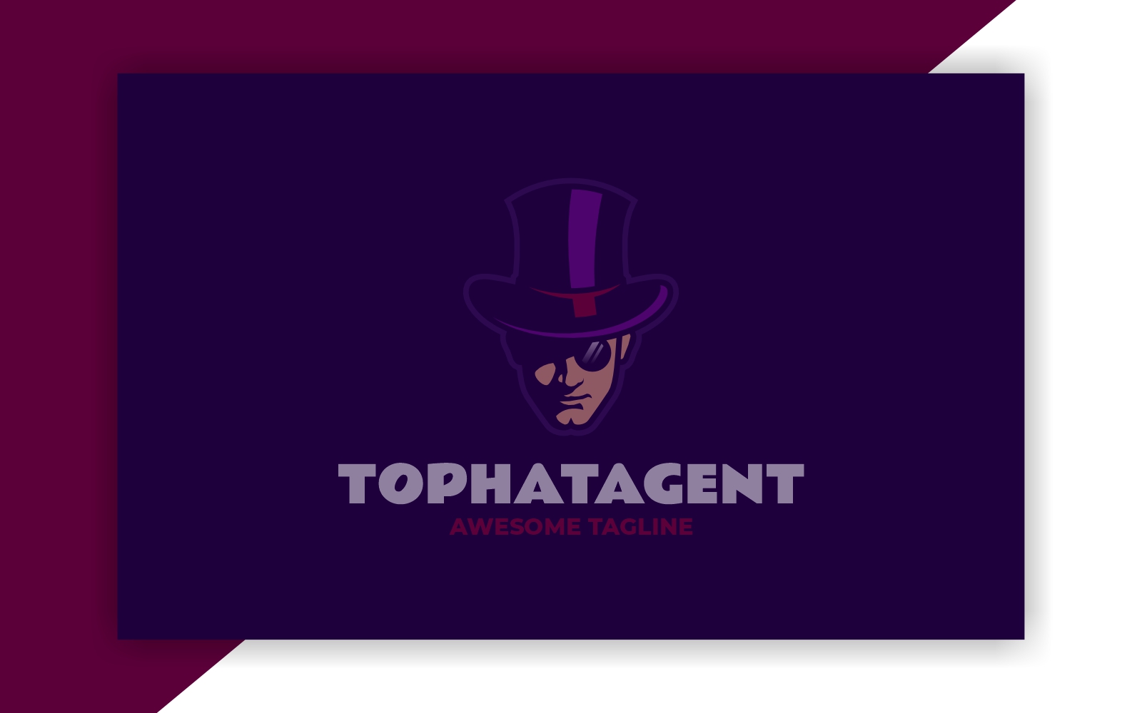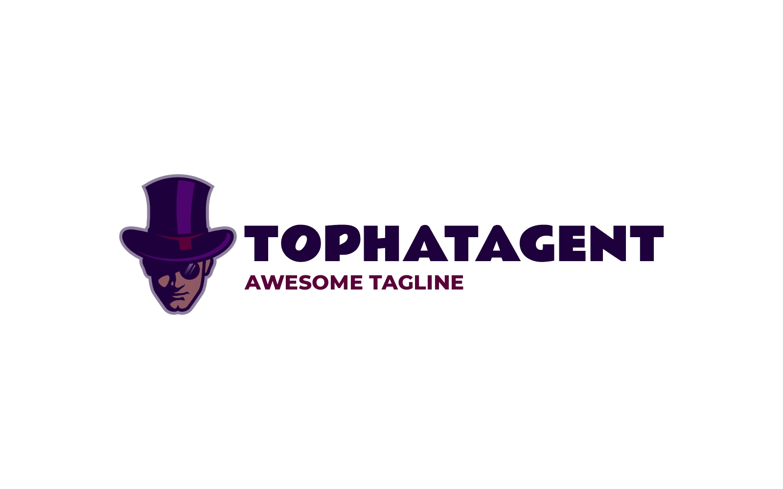 A clean and mysterious gentleman mascot featuring a purple tophat and monocle, radiating a suave detective or secret agent aura. This refined character is perfect for stealth-themed branding, games, or vintage-inspired products seeking a stylish and secretive identity. The design blends elegance, mystery, and charm in a bold vector style.
