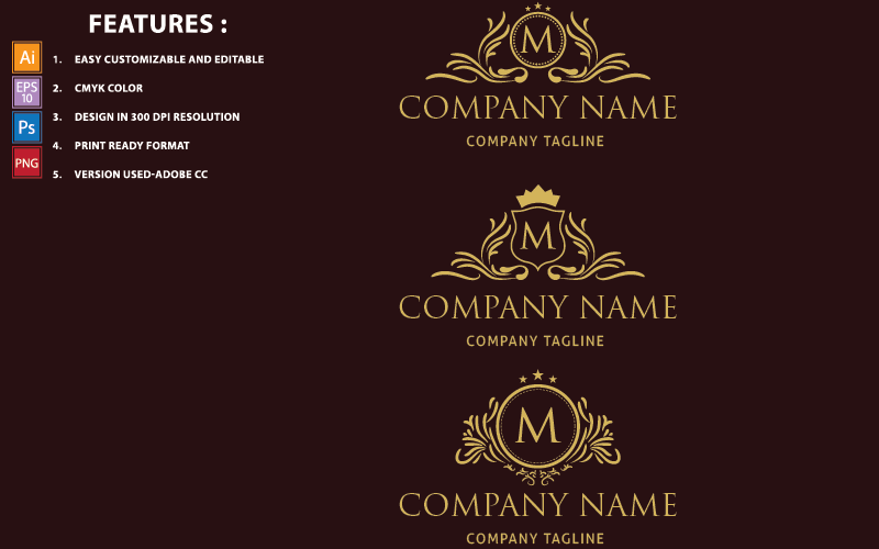 This is a Luxury Logo Design Template. This Logo download contains 300 dpi print-ready CMYK Ai & EPS files. All main elements are editable and customizable.