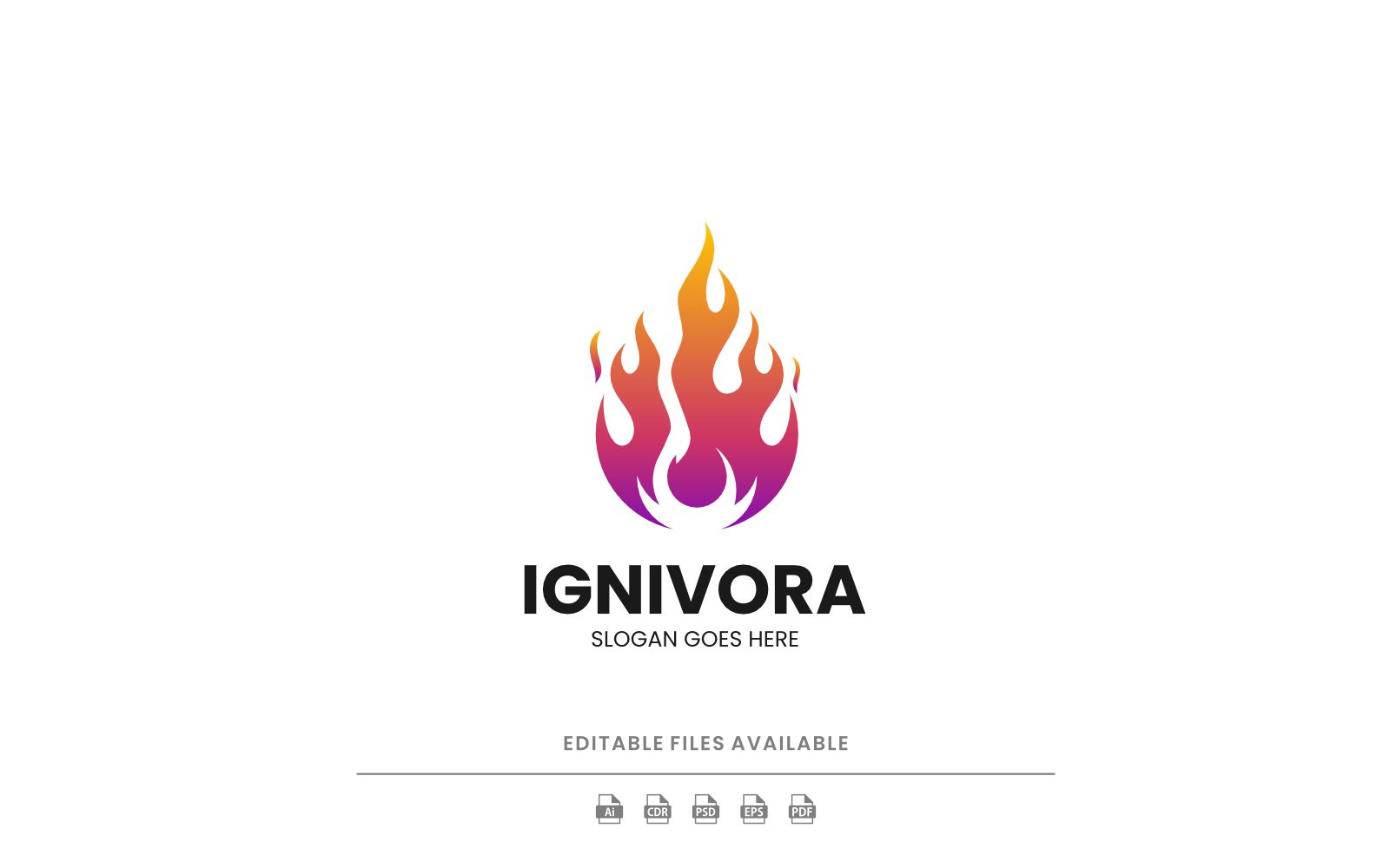 Ignivora is a modern abstract flame logo designed with a vibrant gradient of purple, pink, and yellow. It symbolizes energy, fire, and dynamic creativity, making it ideal for bold branding, innovative businesses, and digital identity projects. Fonts are not included but can be downloaded for free via the links provided in the documentation.