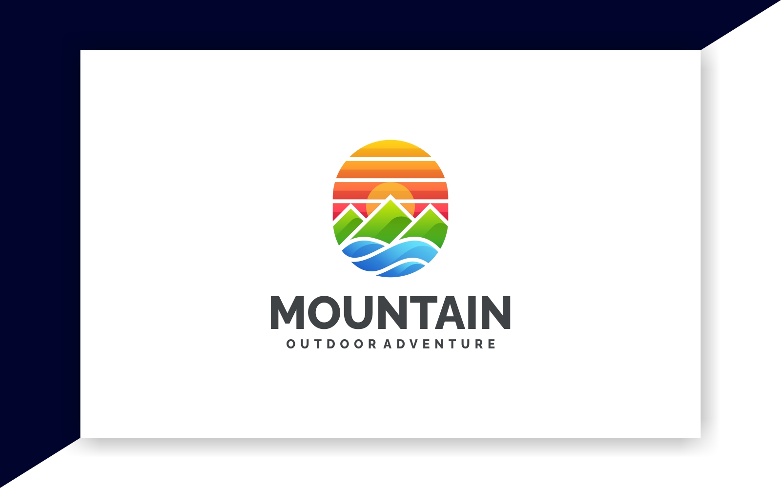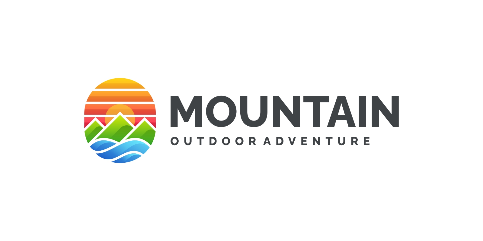 A vibrant and colorful mountain logo ideal for outdoor and adventure brands. This design features sun, mountains, and river elements arranged in a rounded composition. Perfect for travel agencies, eco-tourism companies, hiking businesses, and outdoor lifestyle brands. The logo symbolizes exploration, freedom, and connection with nature. This logo is vector-based. It is fully editable and scalable without losing resolution. Fonts are not included but can be obtained for free from websites indicated in the font link file in the documentation folder.