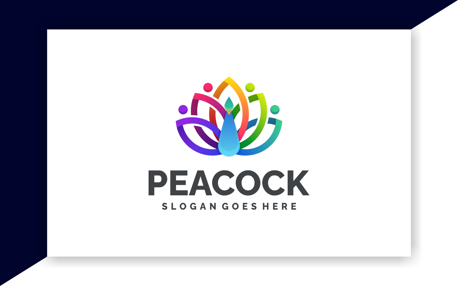 A vibrant and colorful peacock logo featuring abstract tail feathers in gradient tones. Ideal for businesses related to art, creativity, wellness, or beauty. This modern vector emblem combines elegance and symbolism, perfect for branding, app icons, or digital media. This logo is vector-based. It is fully editable and can be scaled without losing resolution. Fonts are not included but can be obtained for free from websites indicated in the font link file within the documentation folder.