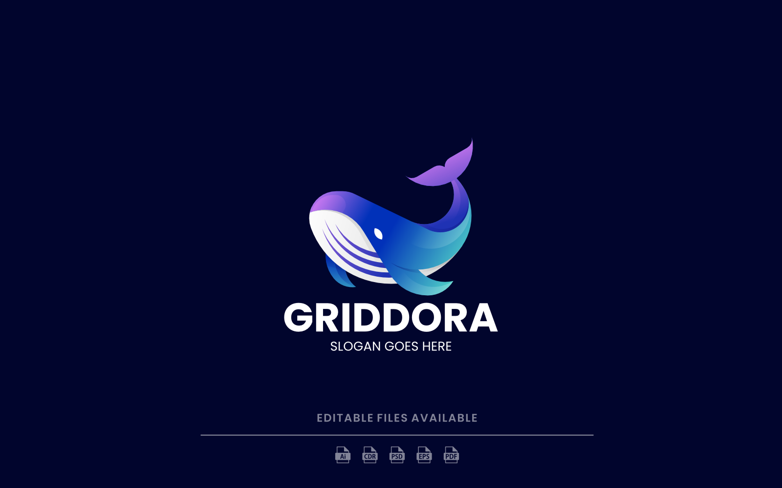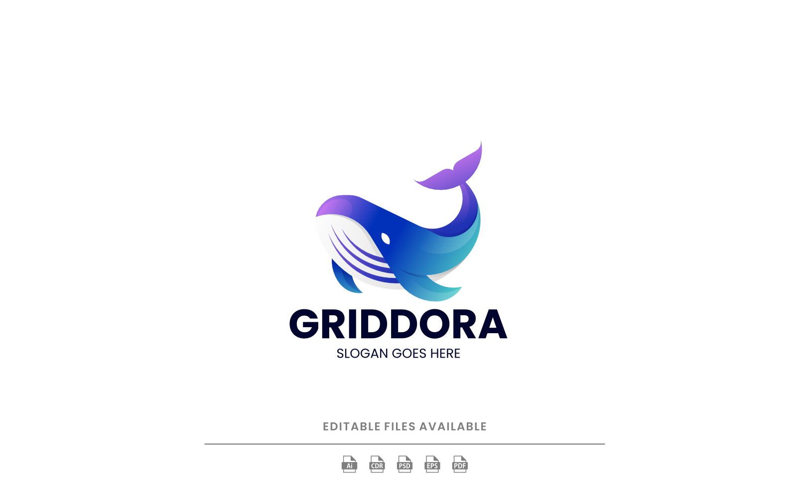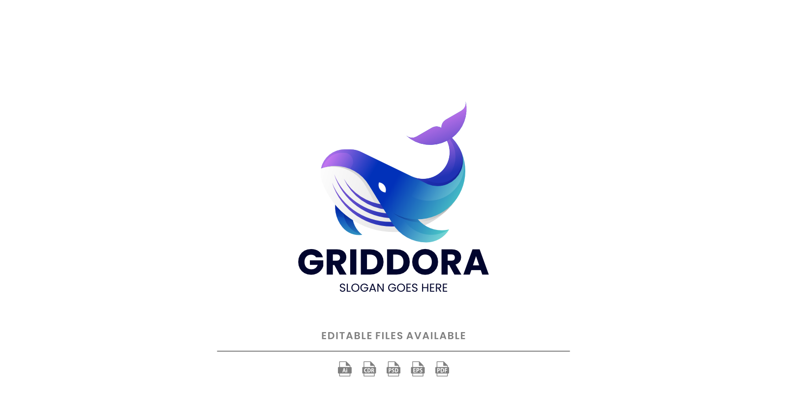 Griddora – A geometric whale logo built with precise grid-based shapes, blending modern minimalism with aquatic elegance. Its clean lines and structured form symbolize balance, flow, and marine identity, making it ideal for creative brands and ocean-inspired projects. Fonts are not included but can be downloaded for free via the links provided in the documentation.