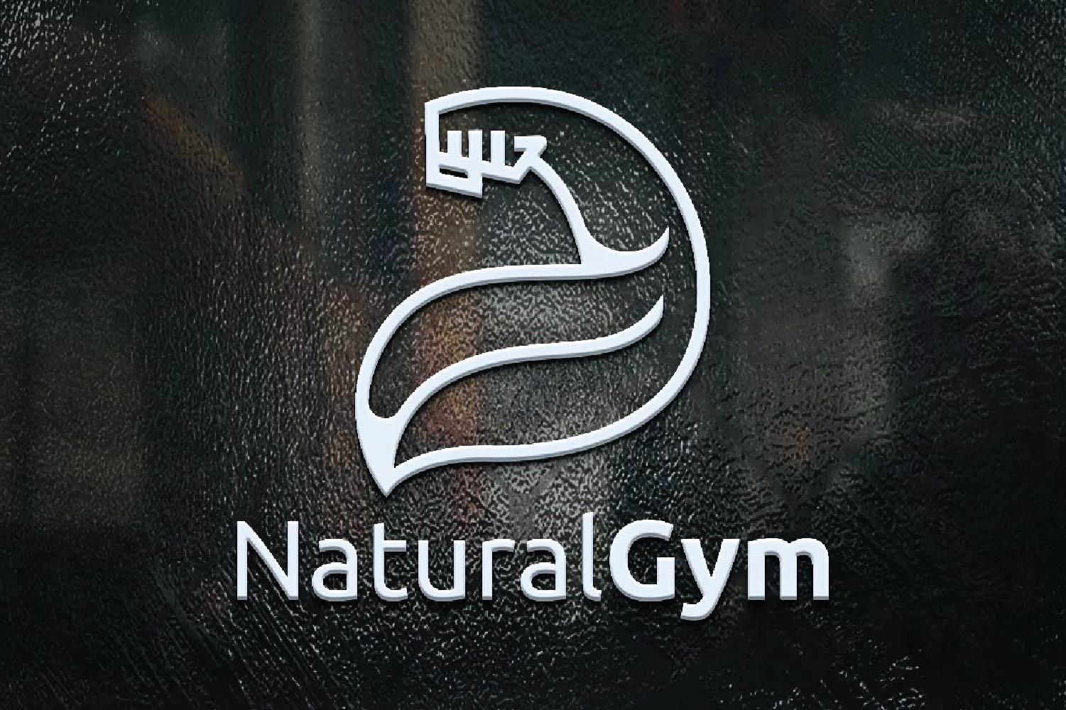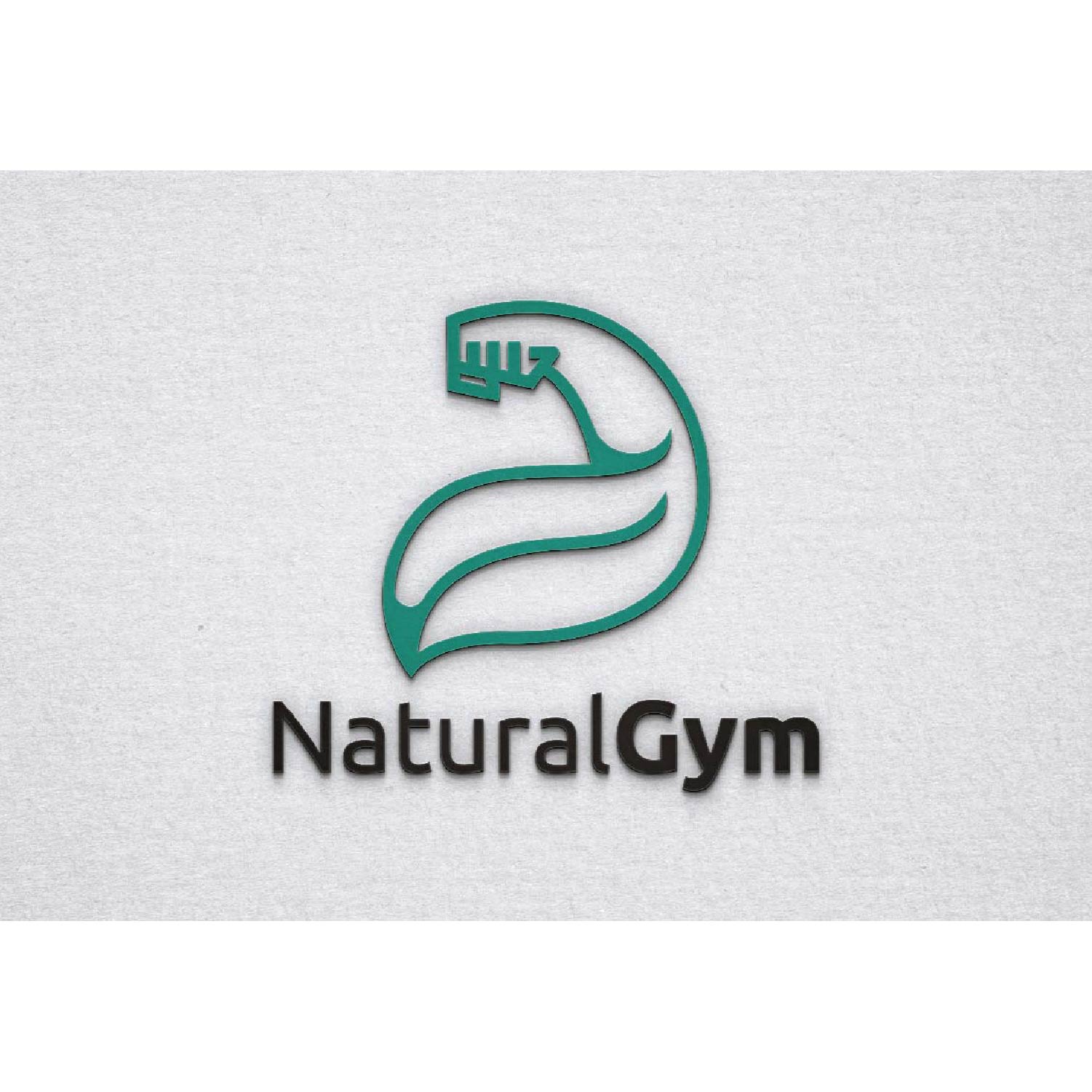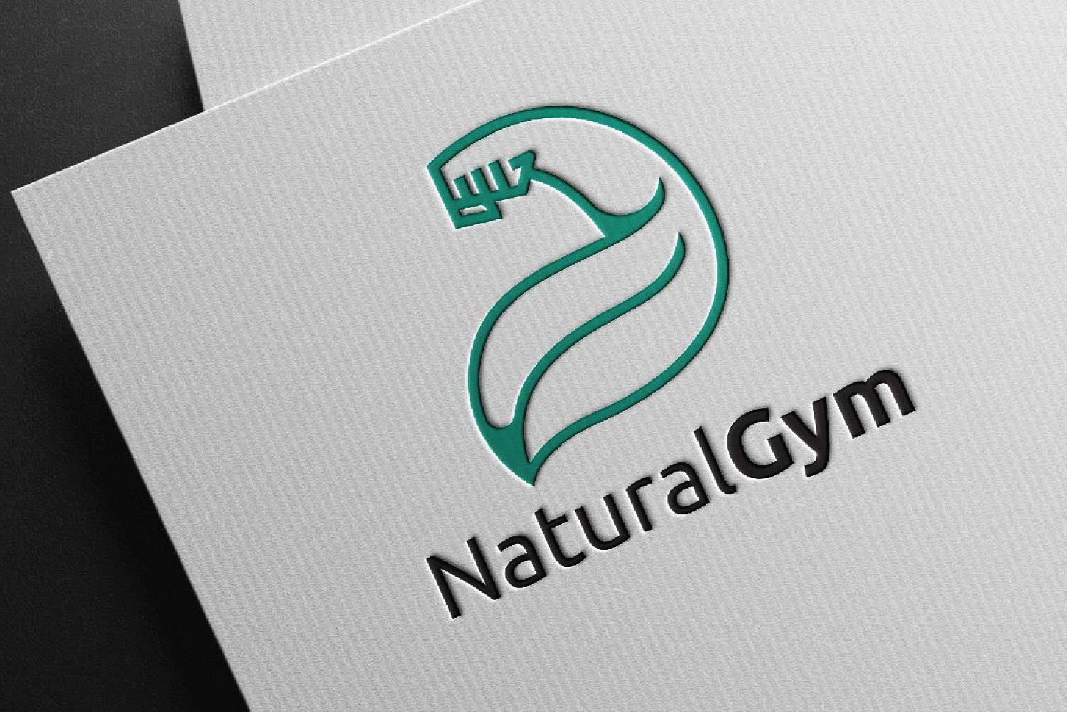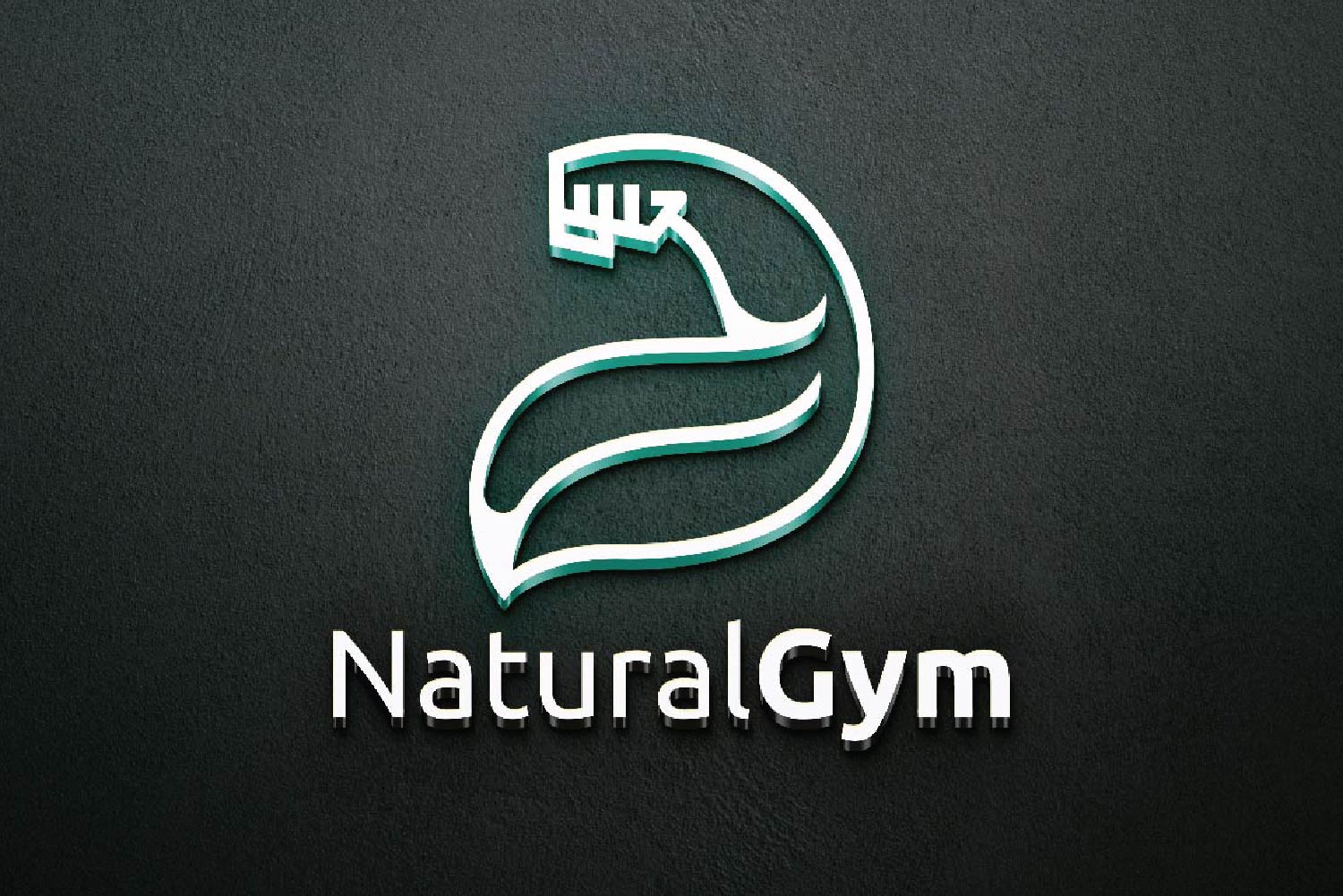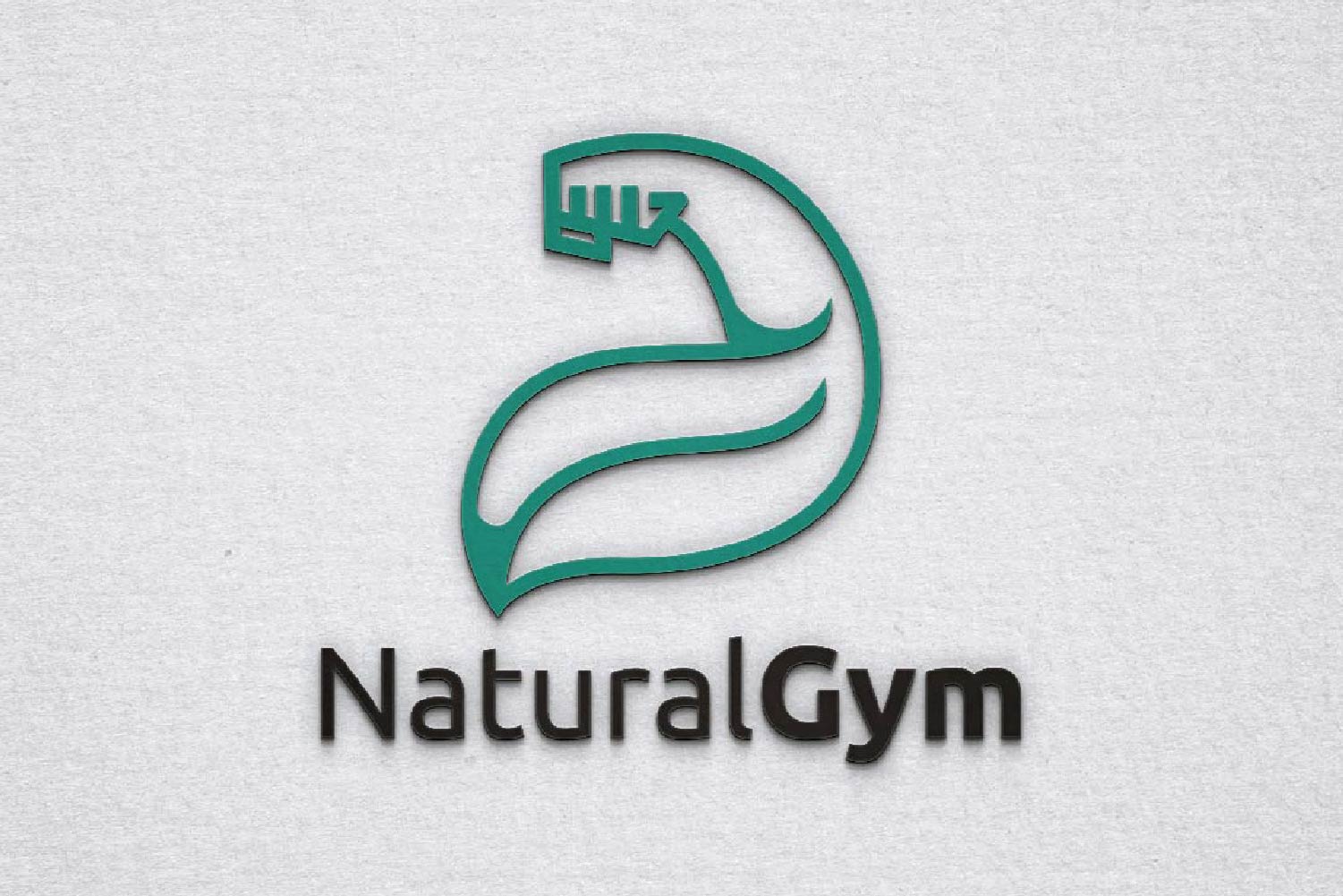 Green Natural Leaf Muscular Strong Hand Gym Logo Template