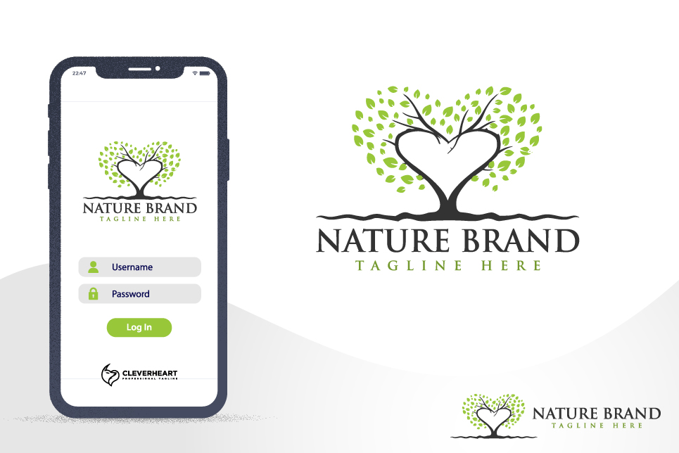 Green Nature Brand Heart Tree Logo Design Logo Template