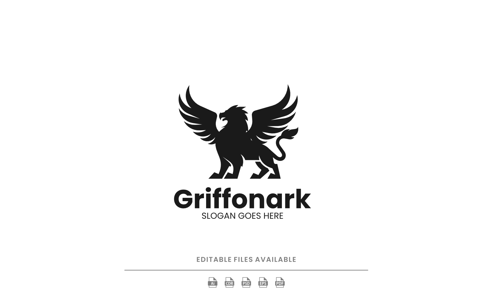 Griffonark features a bold silhouette of the mythical griffin with wings spread wide. Designed in a thick black shadow style, it conveys strength, protection, and timeless power, making it a perfect emblem for modern branding, fantasy projects, and iconic identity marks. Fonts are not included but can be downloaded for free via the links provided in the documentation.