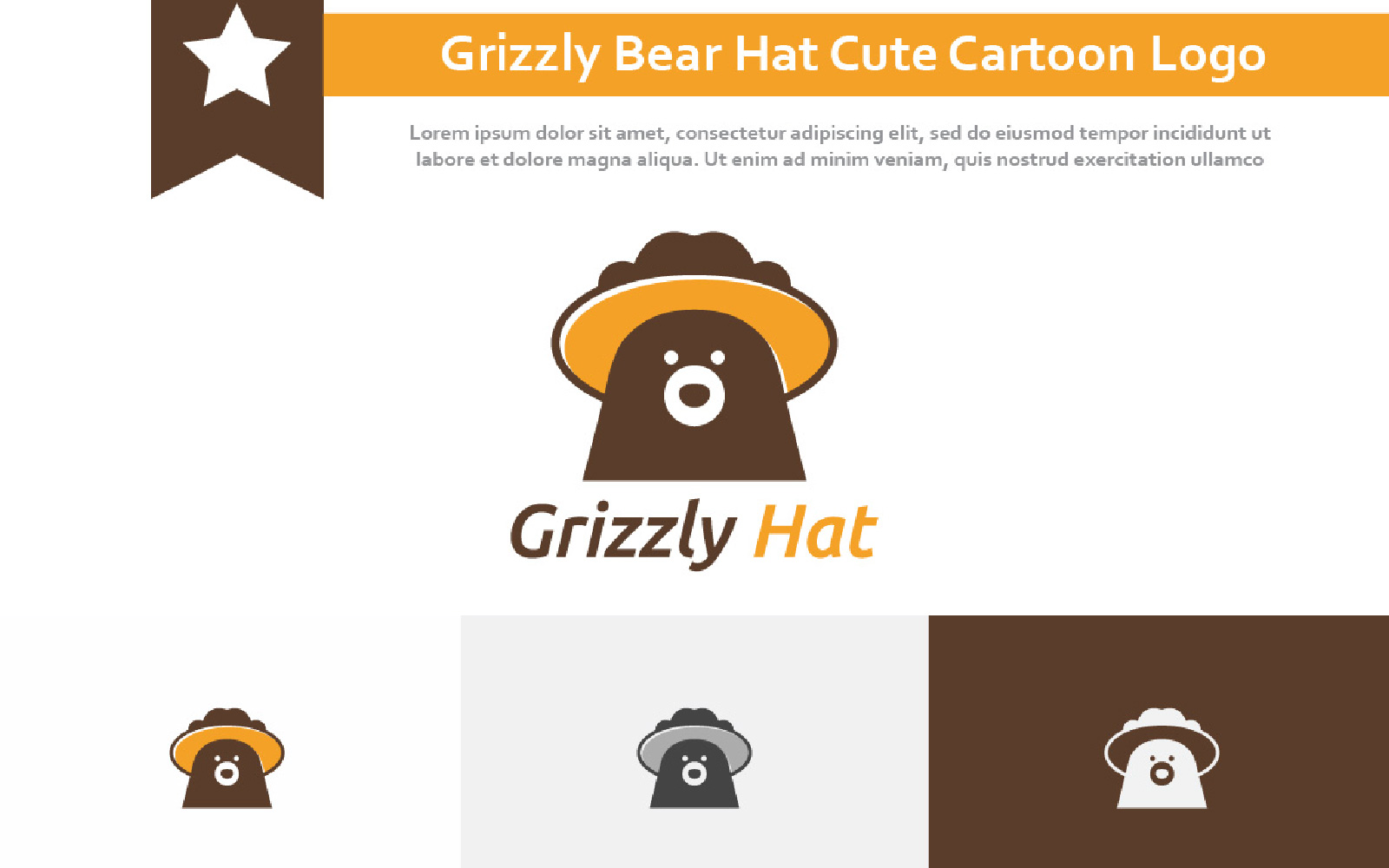 Grizzly Bear Hat Cute Animal Cartoon Logo Mascot Logo Template