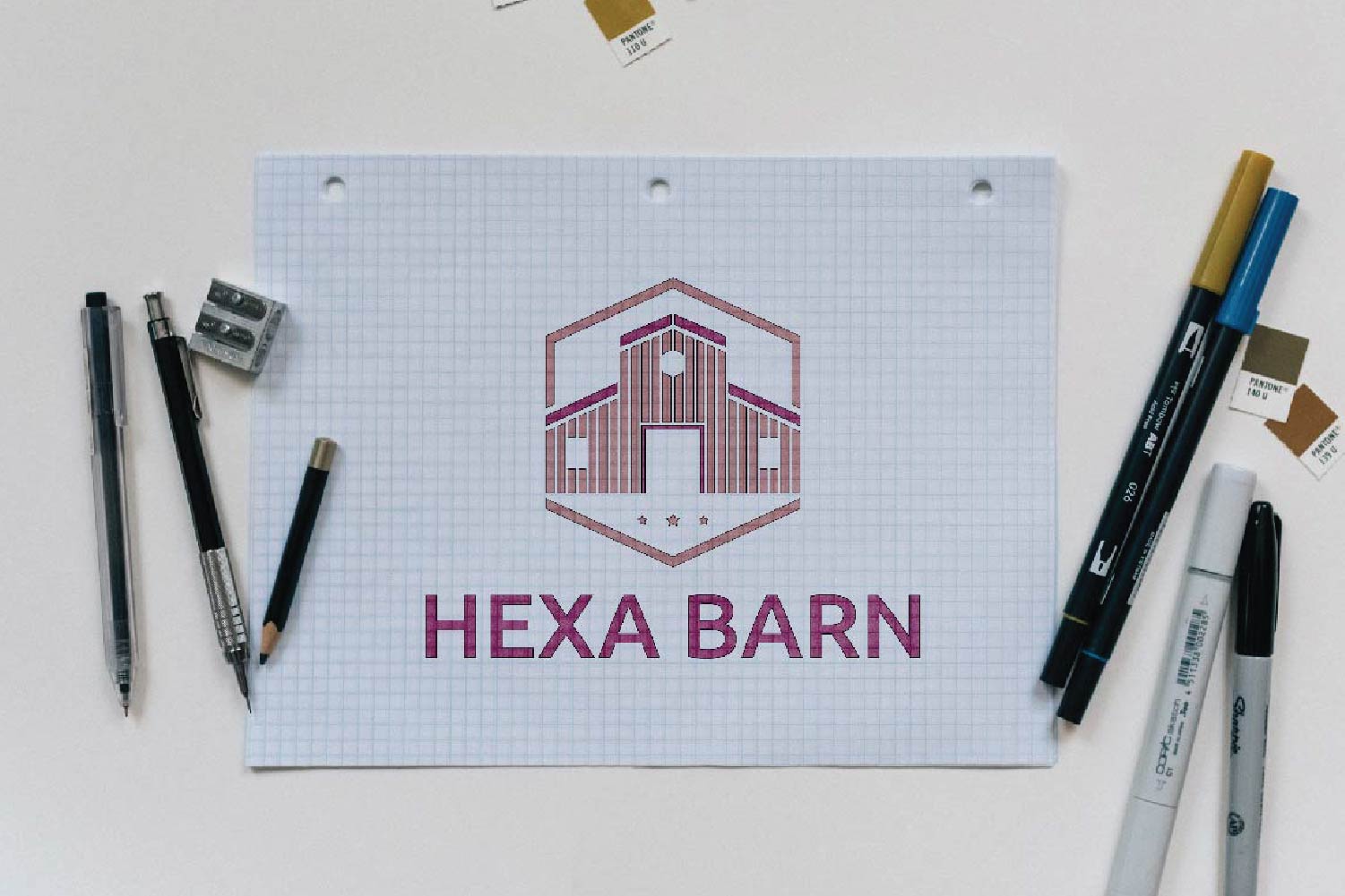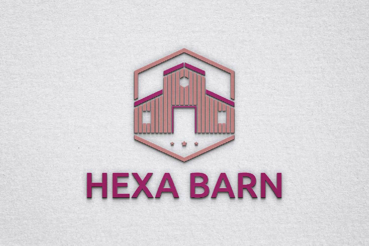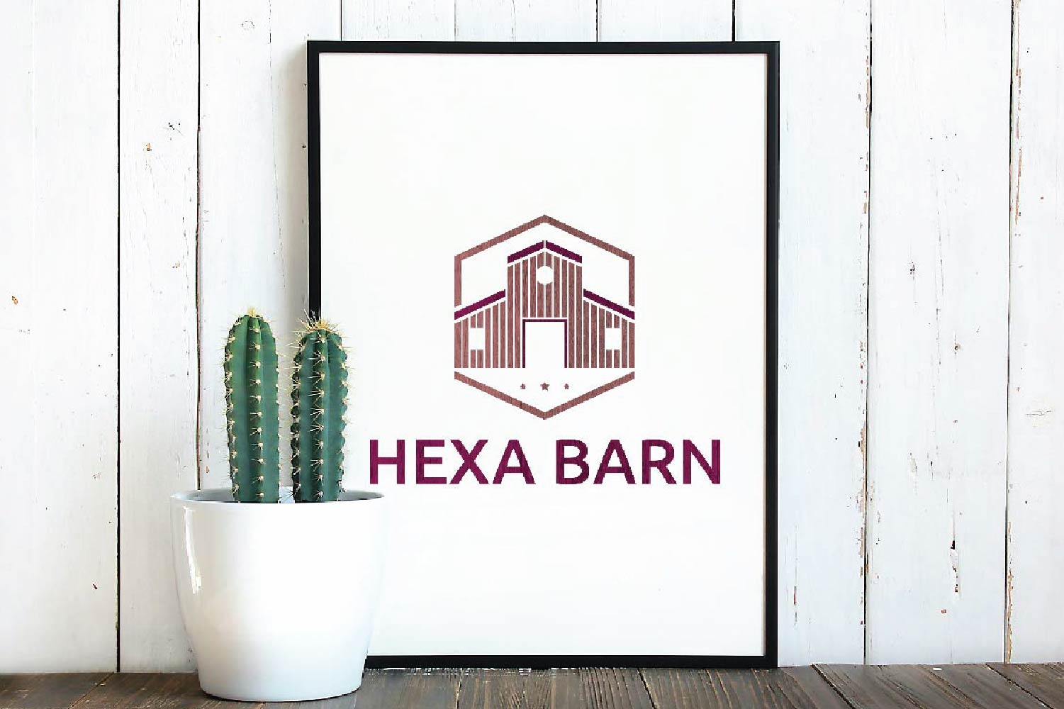 Hexagon Barn Farm Warehouse Wooden Traditional Building Logo Template