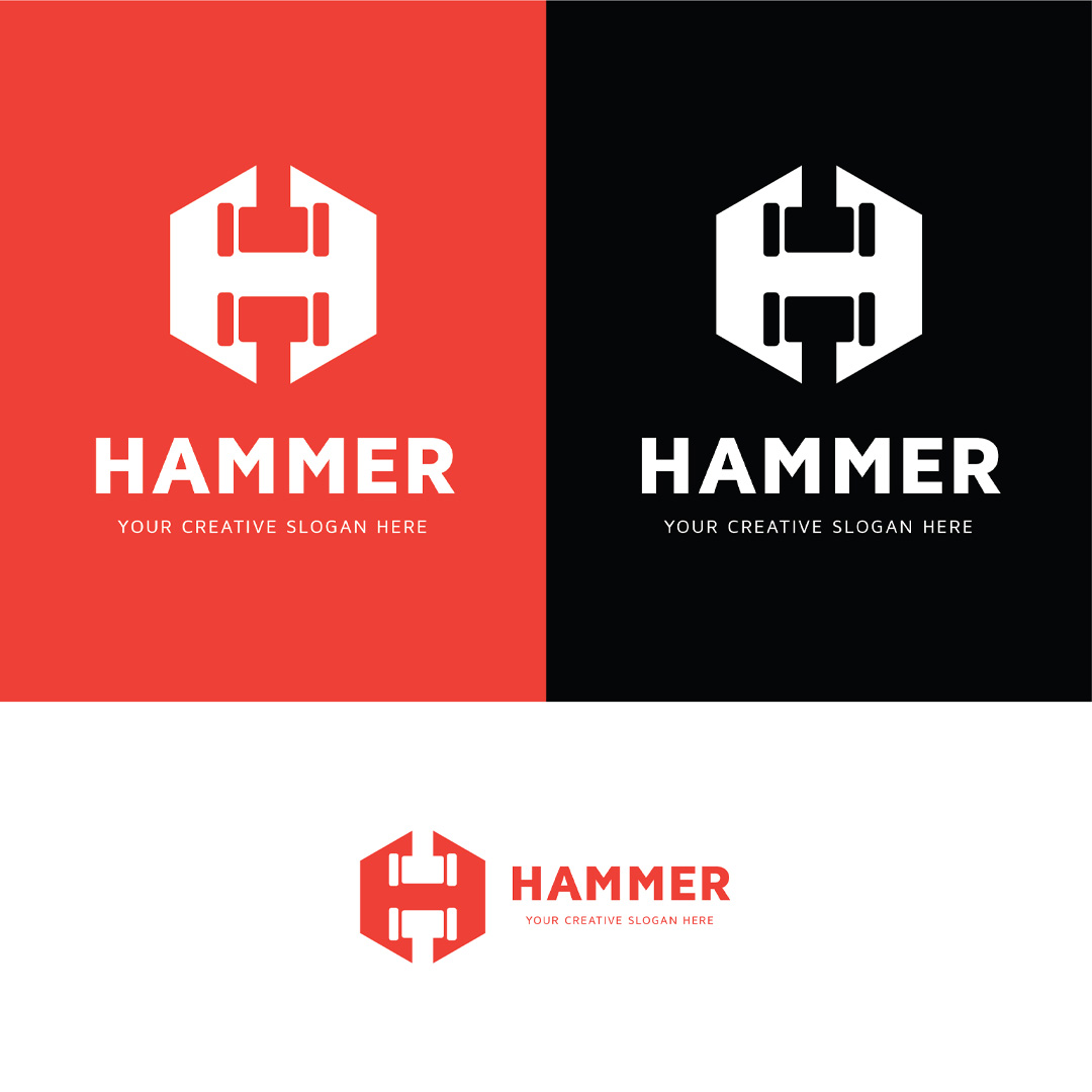 Logo Specifications: 1. A modern professional Hexagonal Hammer H Letter Logo
