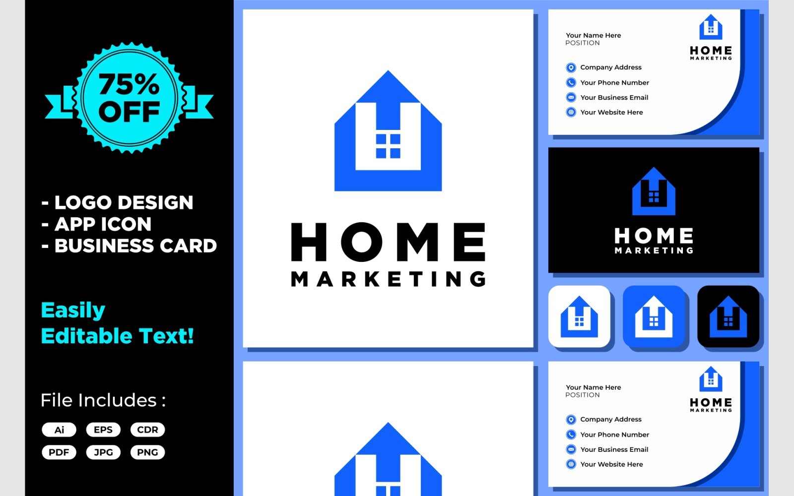 Home Arrow House Up Forward Rent Success Simple Building logo design inspiration with Layout Template Business Card.