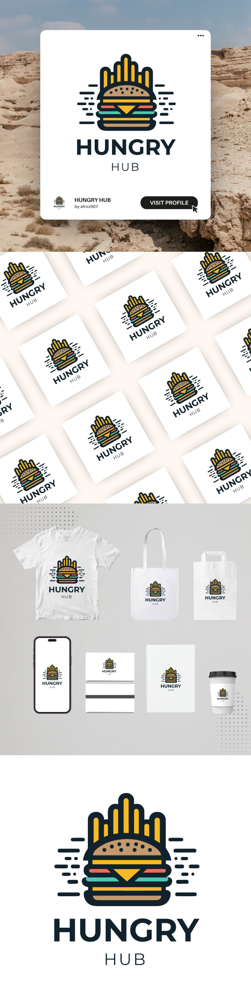 Hungry Hub Template – Dynamic Logo for Fast Food Chains & Trucks is a bold and modern design, perfect for burger joints, food trucks, quick-service restaurants, snack bars, and fast food delivery brands.