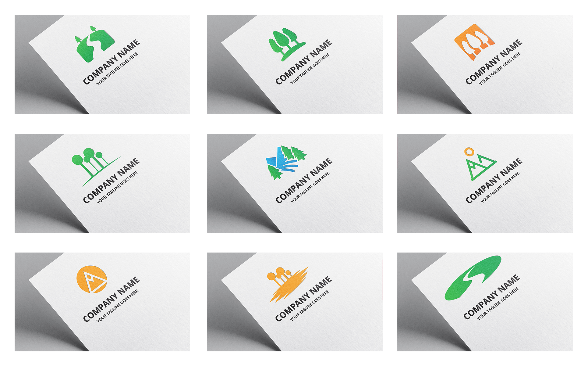 - 20+ High-Quality Logo Designs: Each template is crafted with landscaping elements (trees, leaves, tools, mountains) and clean, modern layouts.