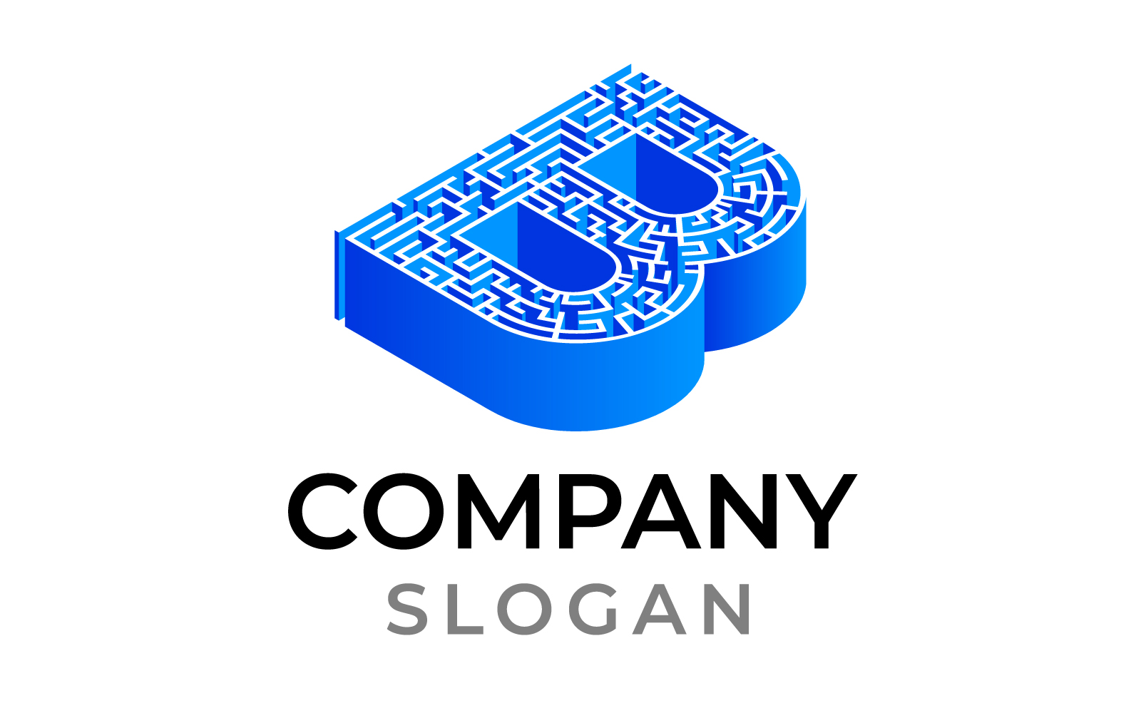 letter B Flat and 3D isometric Maze Logo design Logo Template