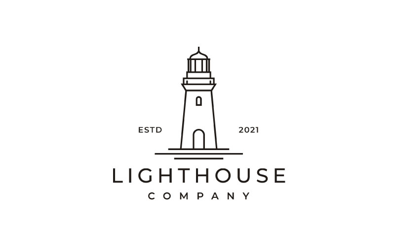 Line Art Lighthouse Searchlight Beacon Tower Island Beach Coast Logo Logo Template