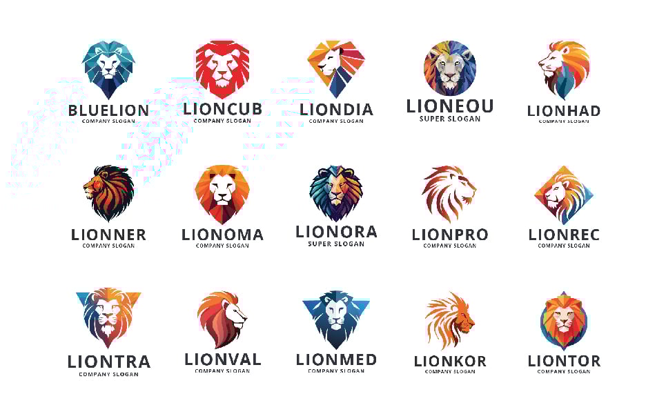 Lion Logo Pack – 15 Unique Vector Lion Head Logos Logo Template