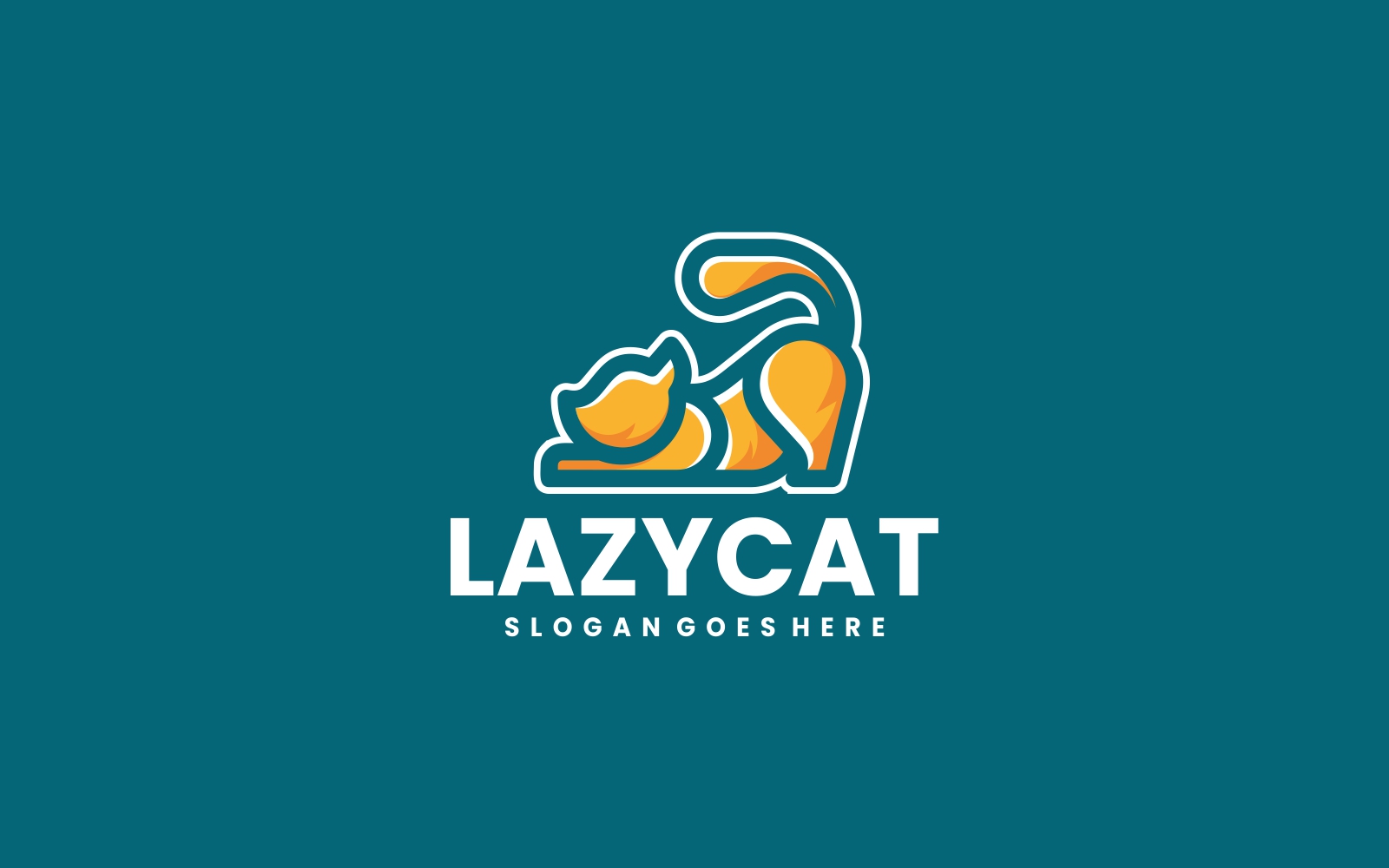 A clean and minimalist cat mascot logo featuring a stretching lazy cat in a simple outlined style. Perfect for pet-related businesses, creative agencies, lifestyle products, or fun modern branding. Works well for merchandise, digital platforms, and professional identity design. This logo is vector based. It is fully editable and can be scaled without losing resolution. Fonts are not included but you can get them for free from certain websites indicated in the font link file. You can get the font link file in the documentation folder.