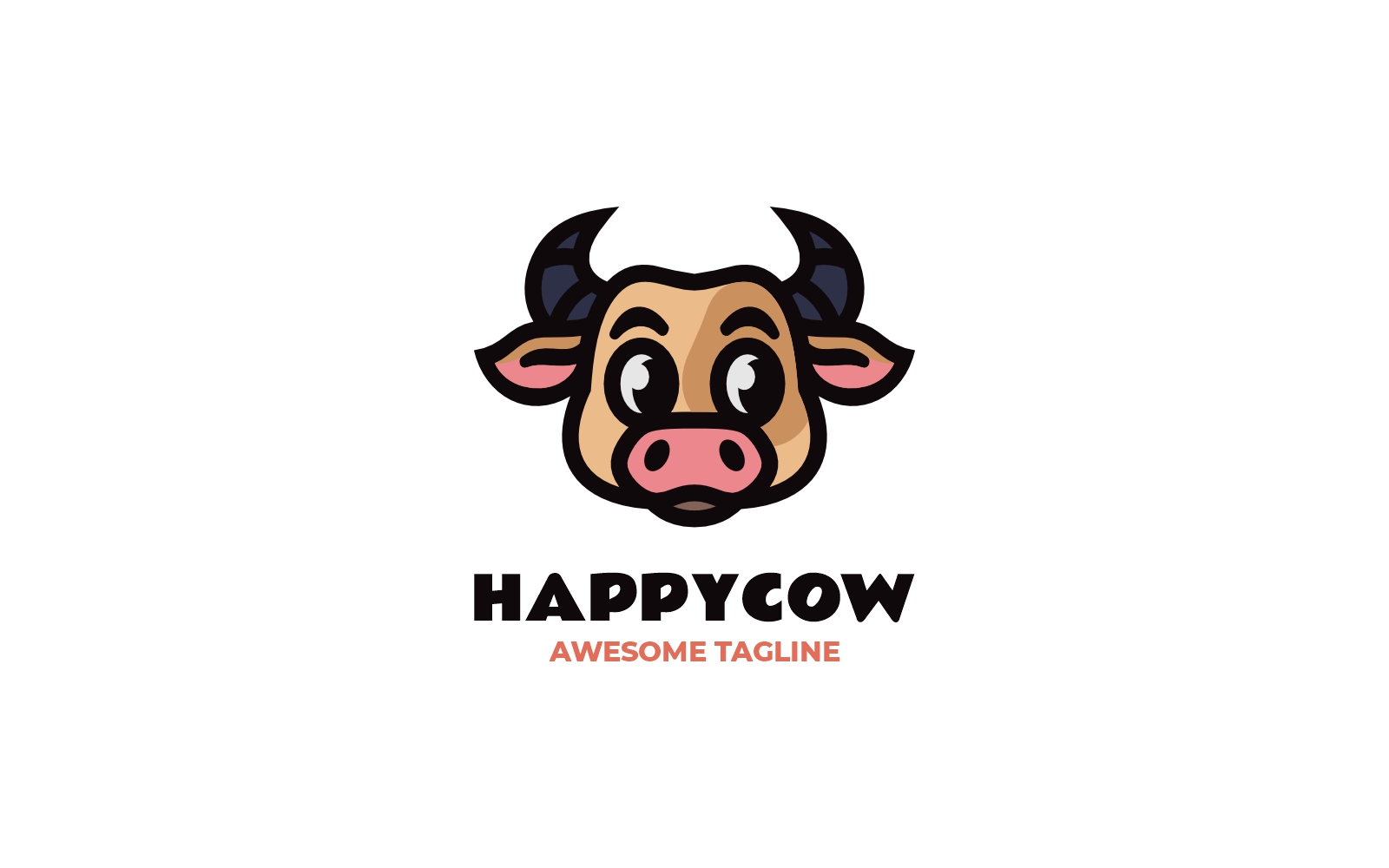 A cute and cheerful cow mascot with round eyes and a friendly smile, perfect for dairy products, farms, kids’ brands, or food packaging. Its simple and approachable design makes it versatile for fun, playful, and family-friendly branding. Fonts are not included but can be downloaded for free via the links provided in the documentation.