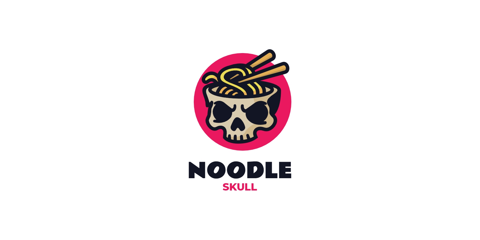 A unique noodle skull mascot with a ramen bowl and chopsticks on its head, combining humor with edgy design. Perfect for gaming clans, foodie brands, restaurants, or Asian-inspired projects seeking a bold esport-style character. Fonts are not included but can be downloaded for free via the links provided in the documentation.
