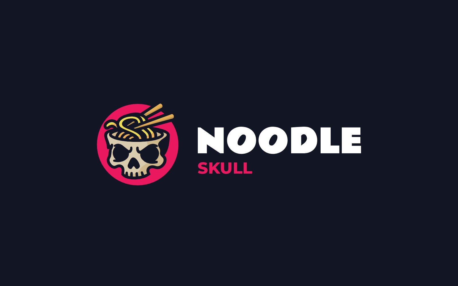 A unique noodle skull mascot with a ramen bowl and chopsticks on its head, combining humor with edgy design. Perfect for gaming clans, foodie brands, restaurants, or Asian-inspired projects seeking a bold esport-style character. Fonts are not included but can be downloaded for free via the links provided in the documentation.