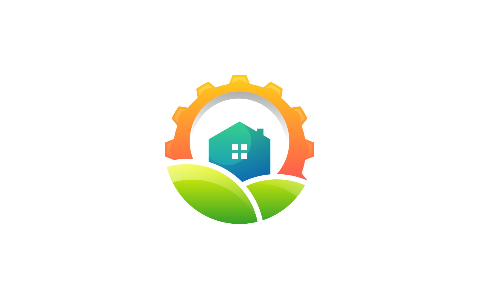 A creative and modern logo design that blends agriculture with technology—featuring a gear symbol, eco-friendly house, and lush green fields. This vibrant design is ideal for agritech startups, smart farming solutions, sustainable agriculture, environmental projects, rural development, and green tech branding.