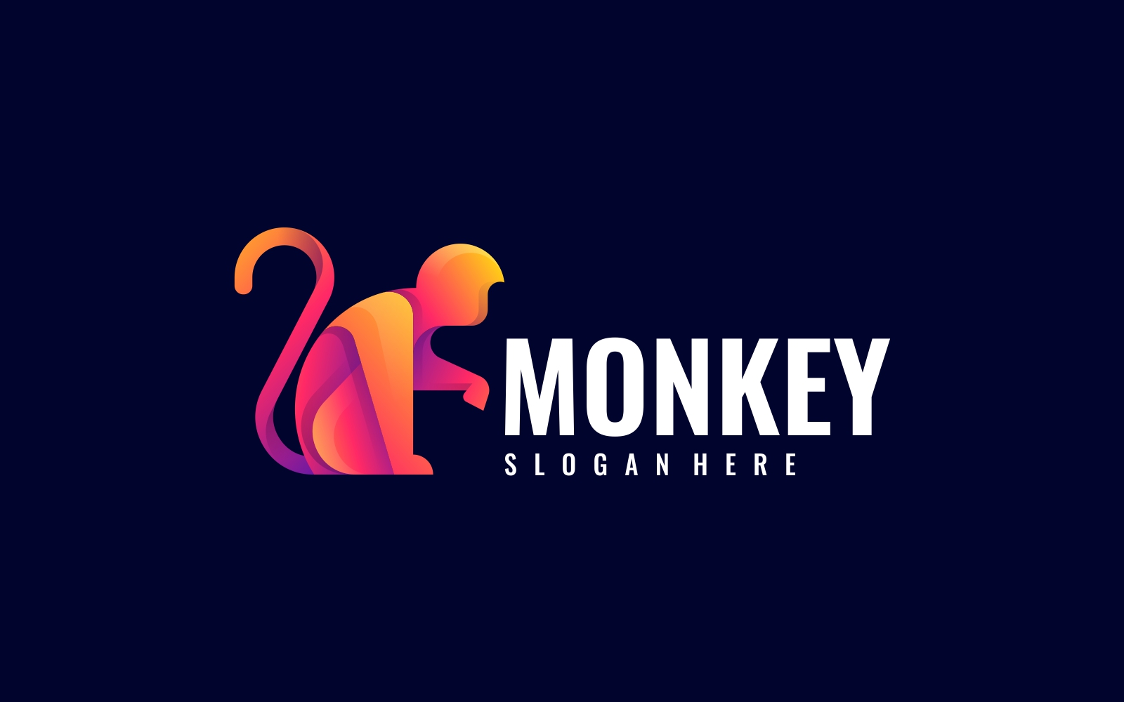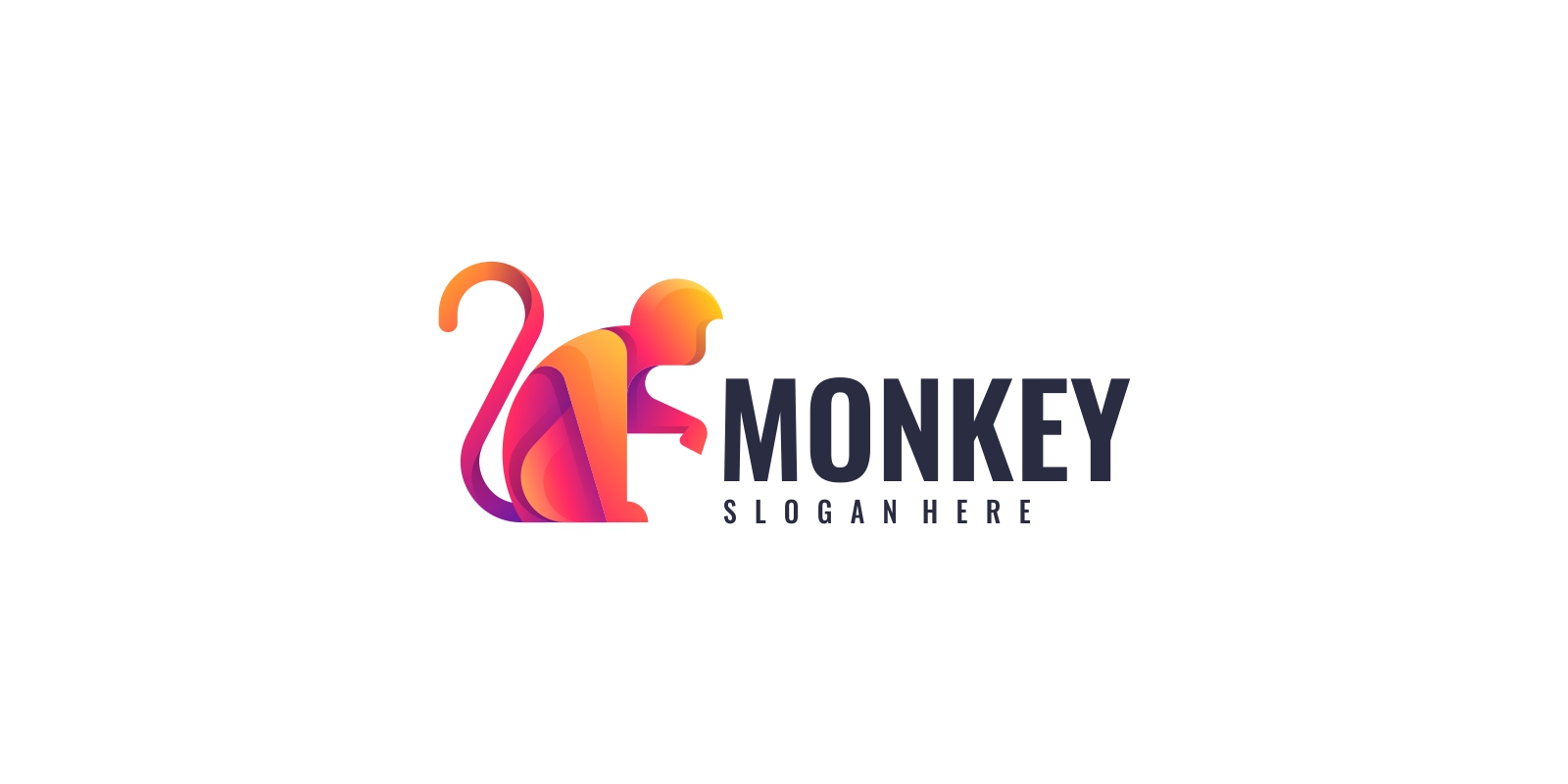 A vibrant and playful monkey logo designed with colorful gradient shades of pink, orange, and purple. The abstract, modern style makes it perfect for entertainment brands, creative industries, children's products, tech startups, or app icons. Its eye-catching, minimal design ensures versatility across both print and digital platforms. This logo is fully vector-based, editable, and scalable without quality loss. Fonts are not included, but free font links are provided in the documentation folder.