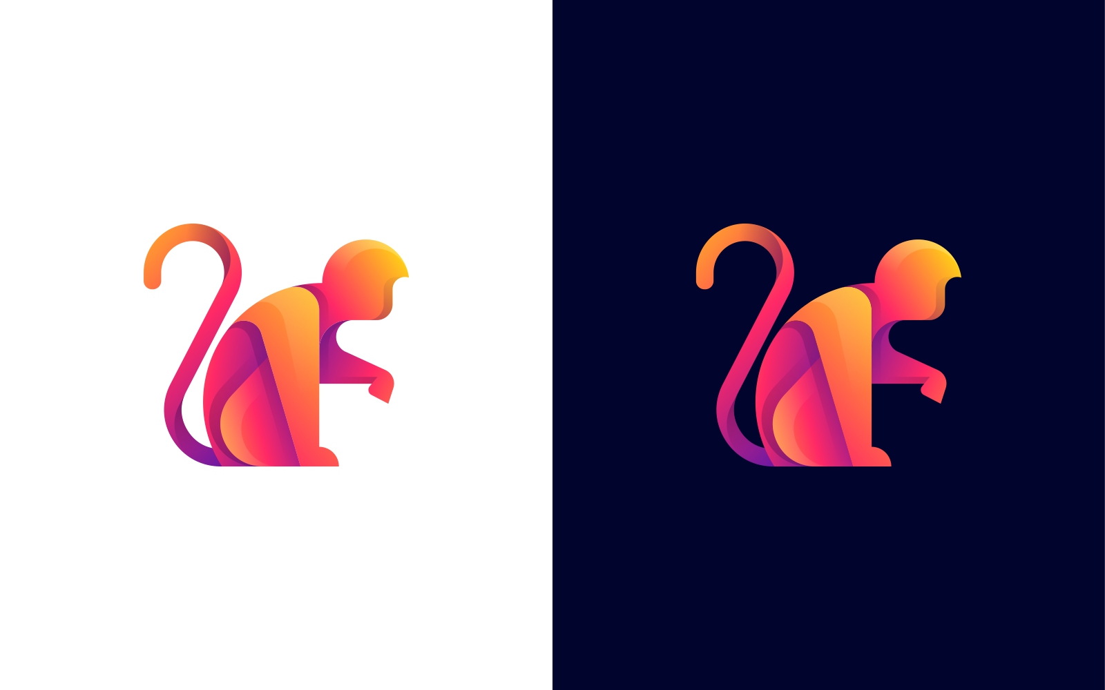 Colorful Gradient Vector Monkey Logo with Abstract Shapes