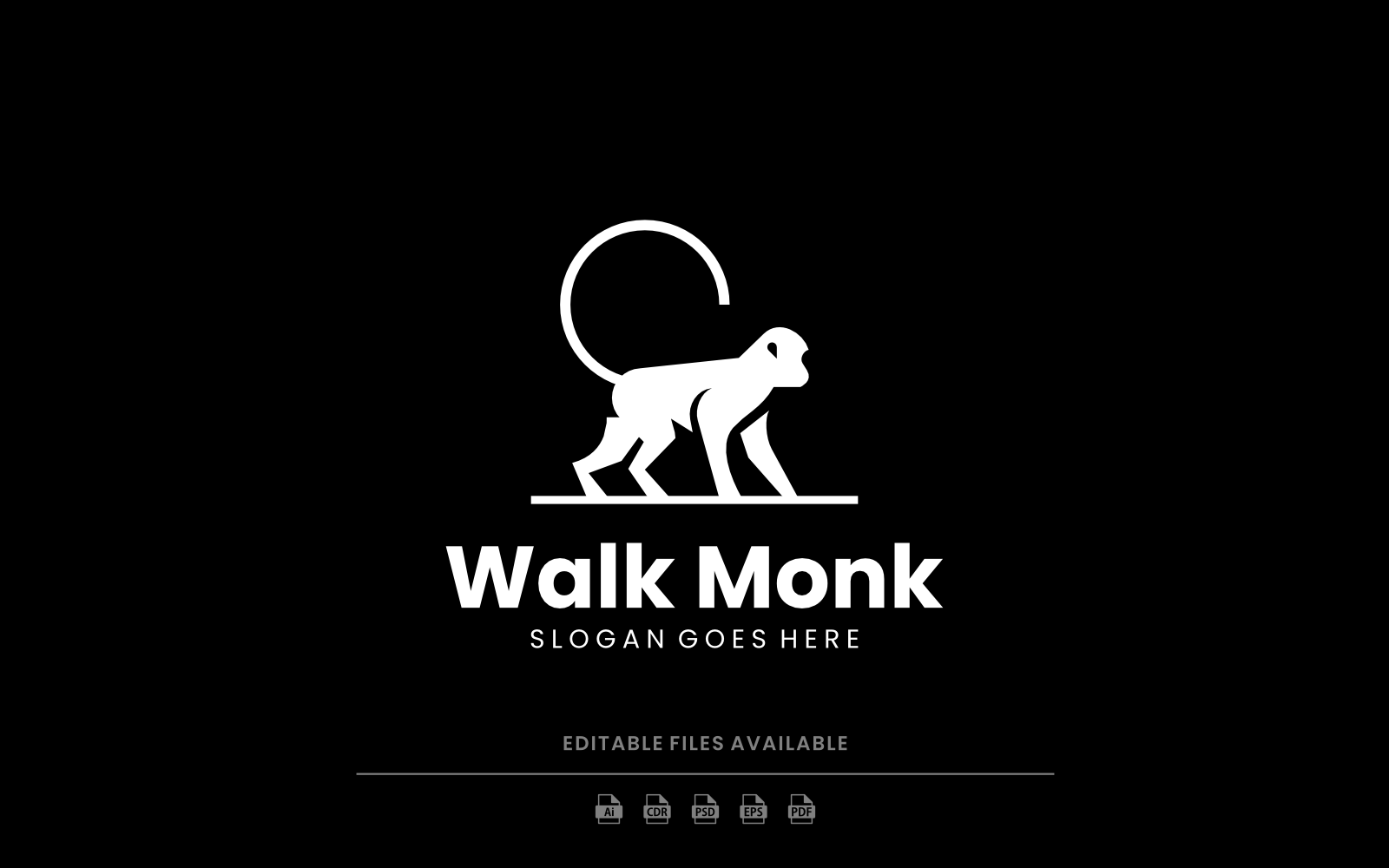 A bold and minimal logo featuring a walking monkey in a clean silhouette style — symbolizing agility, curiosity, and movement. The simple and versatile design makes it suitable for a wide range of branding needs, from modern companies to lifestyle products. Perfect for adventure brands, clothing labels, sports teams, creative studios, kids' brands, outdoor businesses, or any project that wants to convey freedom and playful energy with a stylish, timeless look.