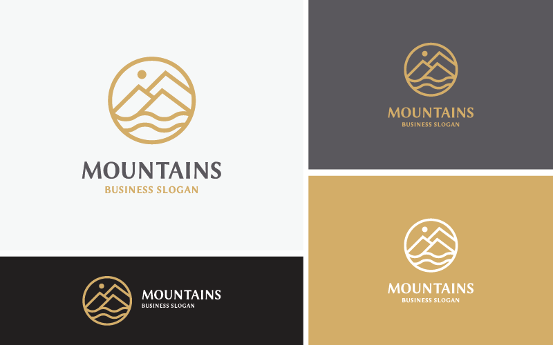 advert, agency, company, emblem, environment, landscape, linear, mountain, nature, ocean, outdoor, outline, oval frame, sea waves, summer, sun, sunlight, sunny, sunrise, sunset, symbol, template, travel, vacation, waves