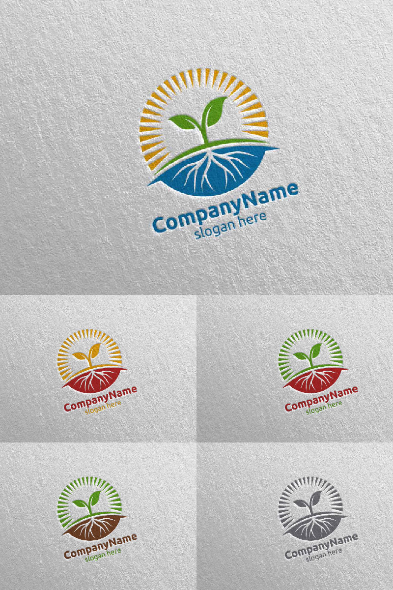 Organic Tree Logo with Leaf Sun and Root Concept for Natural Agriculture ,Farm or Gardening Template Features: