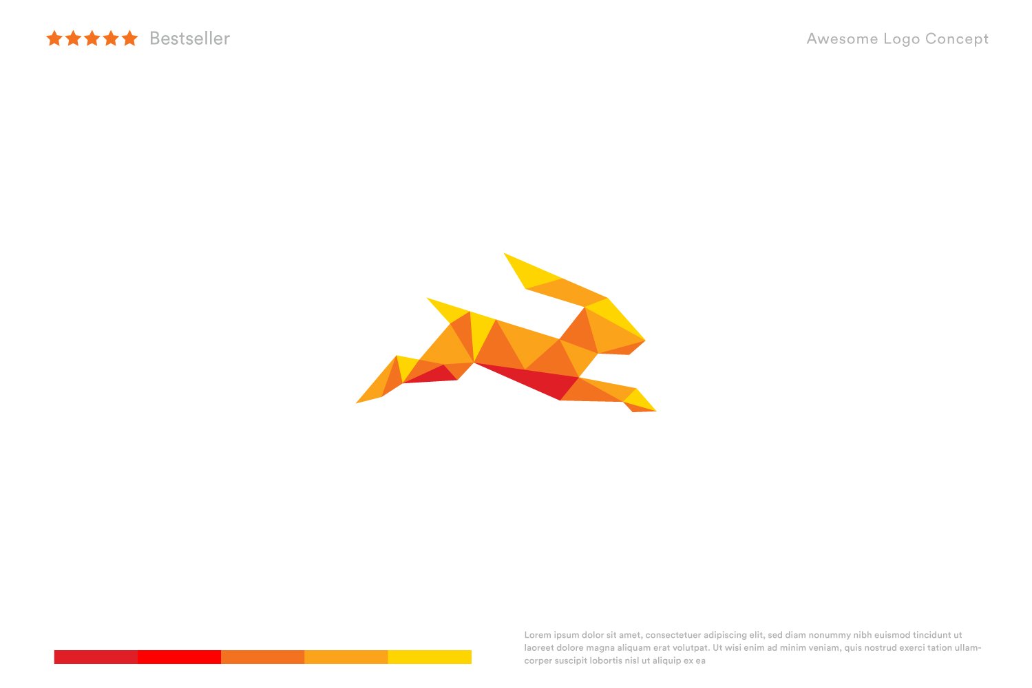 Origami or Low poly / polygonal style rabbit, geometric hare logo template.
