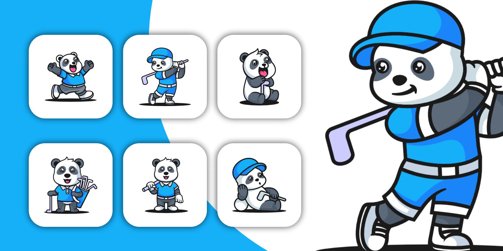 Panda Golf Squad is a playful and professional logo bundle featuring 6 unique golf-themed panda mascot designs. Each logo showcases an expressive character in various golfing styles — from tournament-ready poses to casual play — bringing charm and energy to any sports identity. Perfect for golf clubs, sporting events, kids' apparel, merchandise, branding projects, or creative campaigns. All artwork is fully vector-based and easy to customize for both digital and print use.