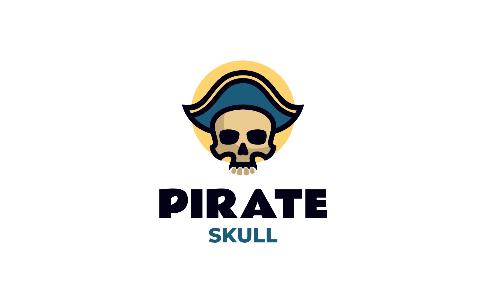 A pirate skull mascot featuring a large navy hat and fierce expression. This bold and stylized design is perfect for edgy brands, gaming streamers, pirate-themed merchandise, adventure games, or Halloween content. This logo is vector-based, fully editable, and scalable without loss of resolution. Fonts are not included but can be freely downloaded from websites listed in the font link file in the documentation folder.