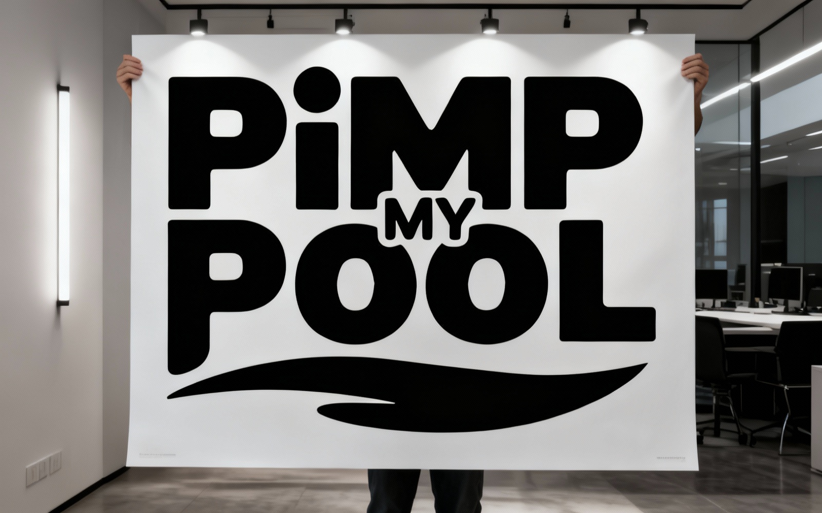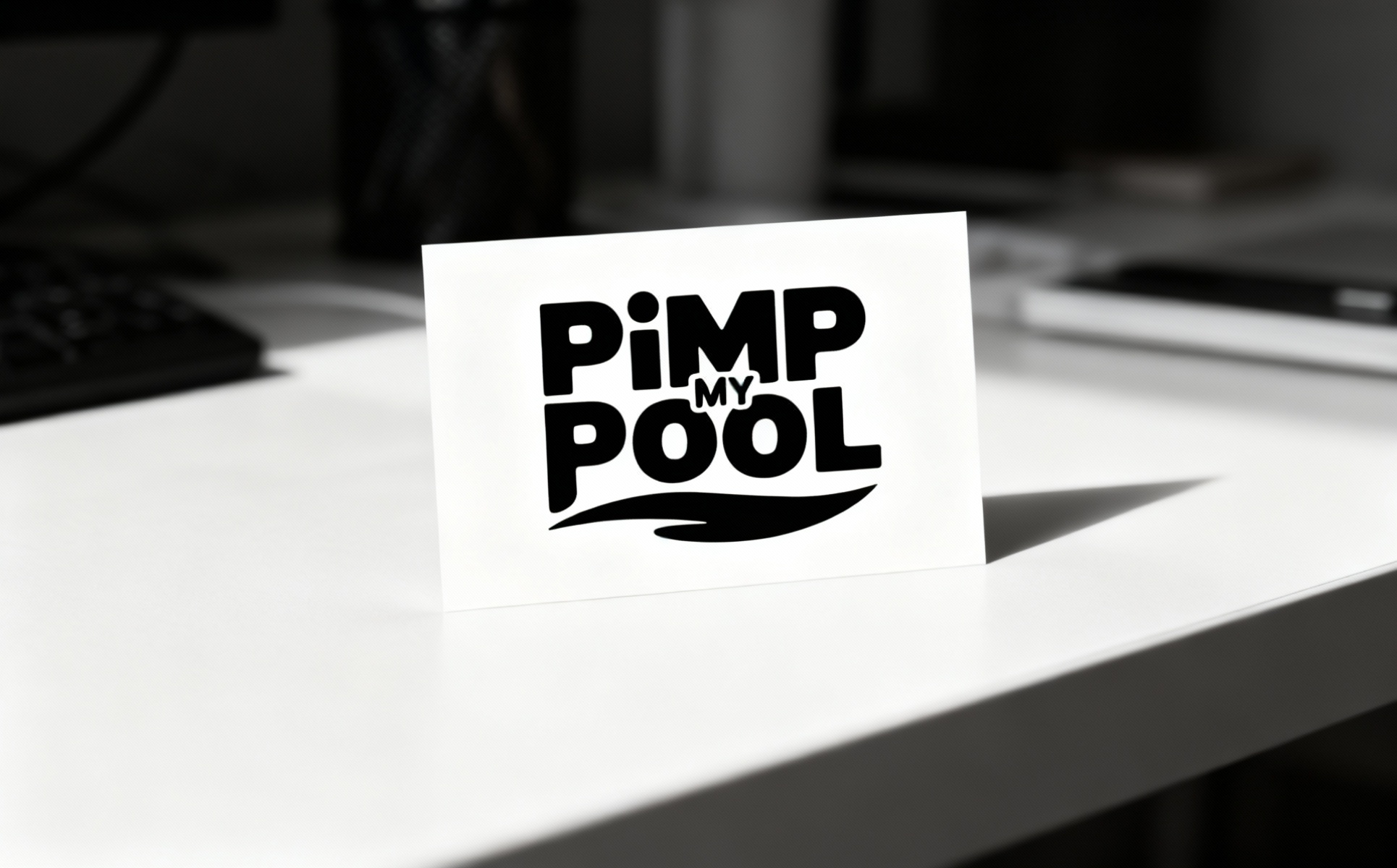 Professional pool branding logo design collection featuring "Pimp My Pool" brand identity. This set includes four unique logo variations showcasing custom typography with bold, playful letterforms and tropical design elements. The collection features black and white typographic treatments with rounded, whimsical fonts, complemented by tropical motifs including palm tree icons and ocean wave graphics in teal and green color schemes. Perfect for swimming pool businesses, pool maintenance services, pool construction companies, or aquatic lifestyle brands. The designs combine modern minimalist aesthetics with dynamic water-themed elements, creating a memorable and versatile brand identity suitable for various applications including business cards, signage, websites, and marketing materials.