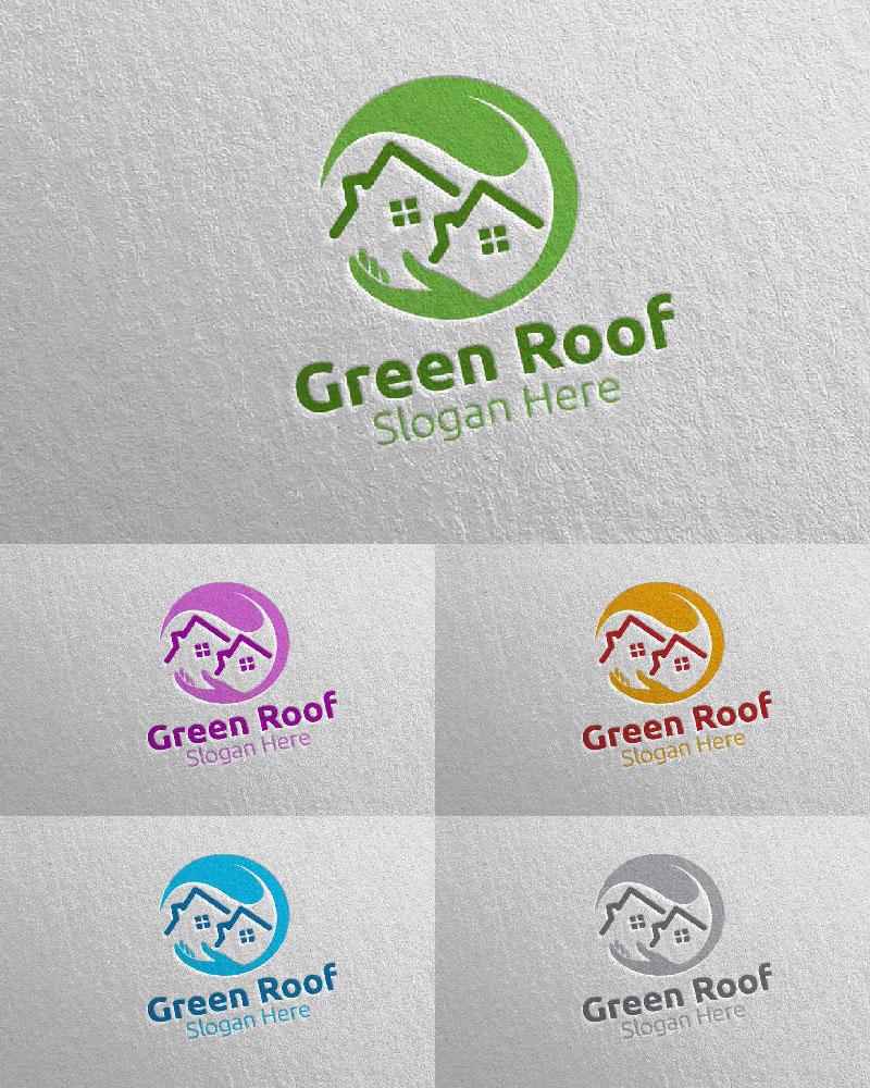 Green Roofing Logo for Property Roof Real Estate or Handyman Architecture Template Features: