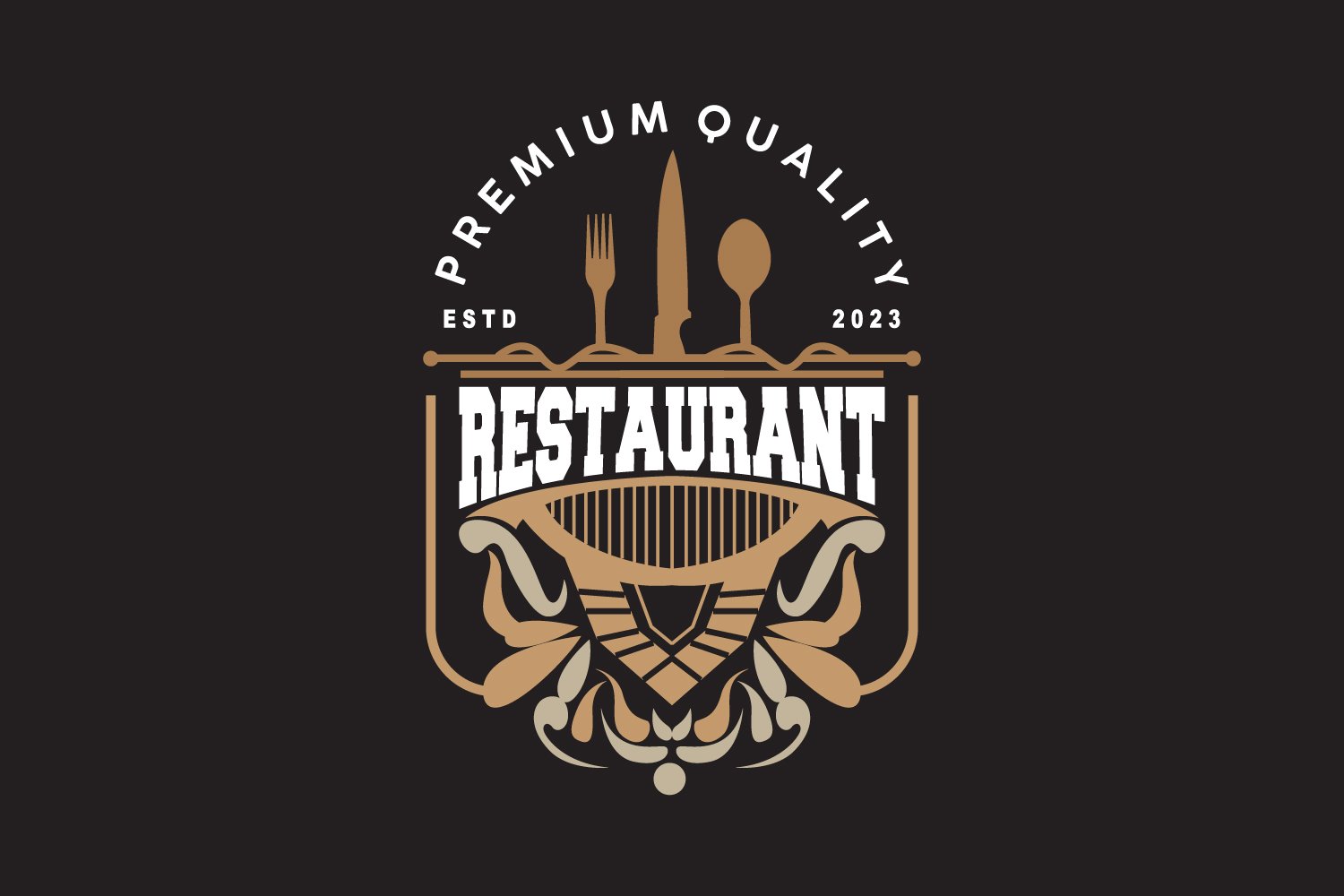 Retro Vintage Style Ornament Design, Logo Retro Restaurant Typography Emblem, Vector Line Simple Elegant Fork Spoon And Knife