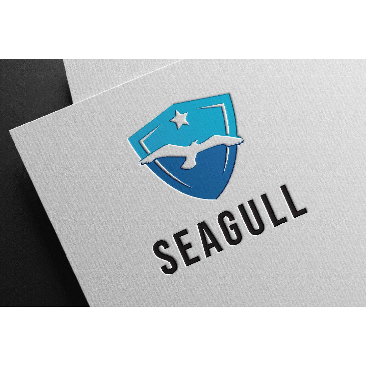 Seagull Bird Flying Freedom with Star Shield Protection Business Logo Template