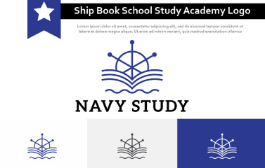Ship Wheel Navy Book School Study Education Academy Line Logo