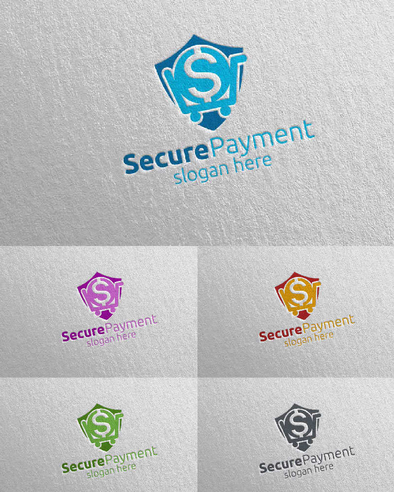Online Secure Payment Logo for Security Online Shopping. Financial Transaction. Sending Money. Mobile Banking Service Logotype Template Features: